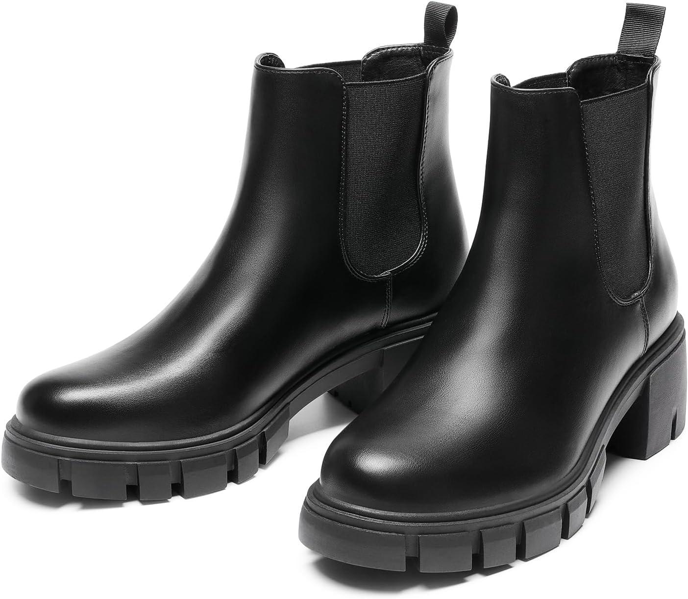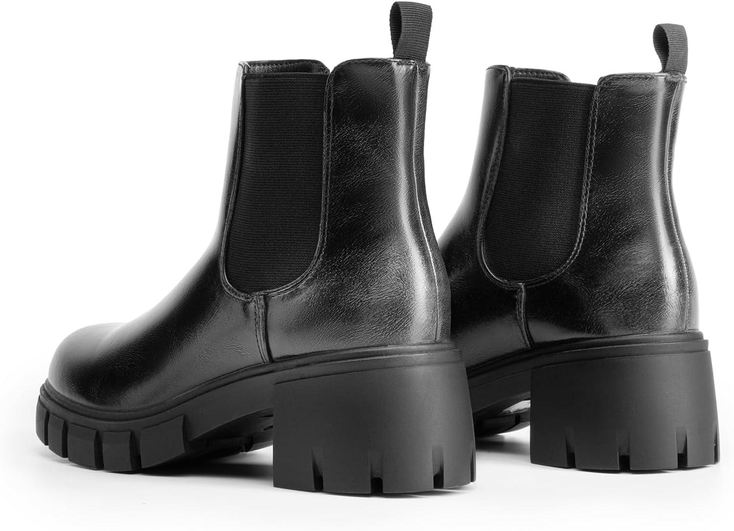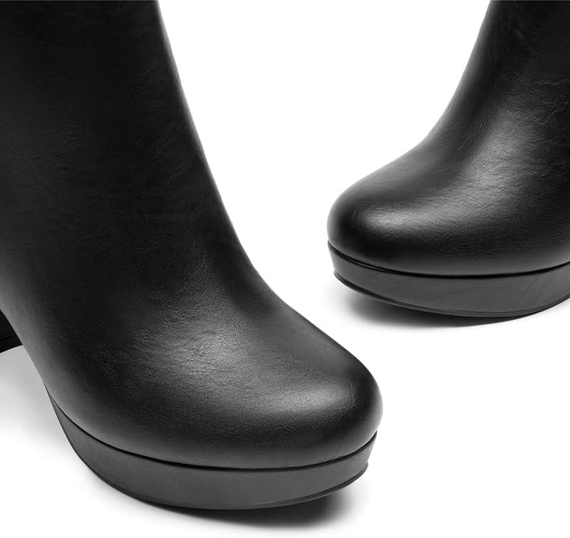 DREAM PAIRS Women’s Stomp High Heel Ankle Boots(Black/Pu)