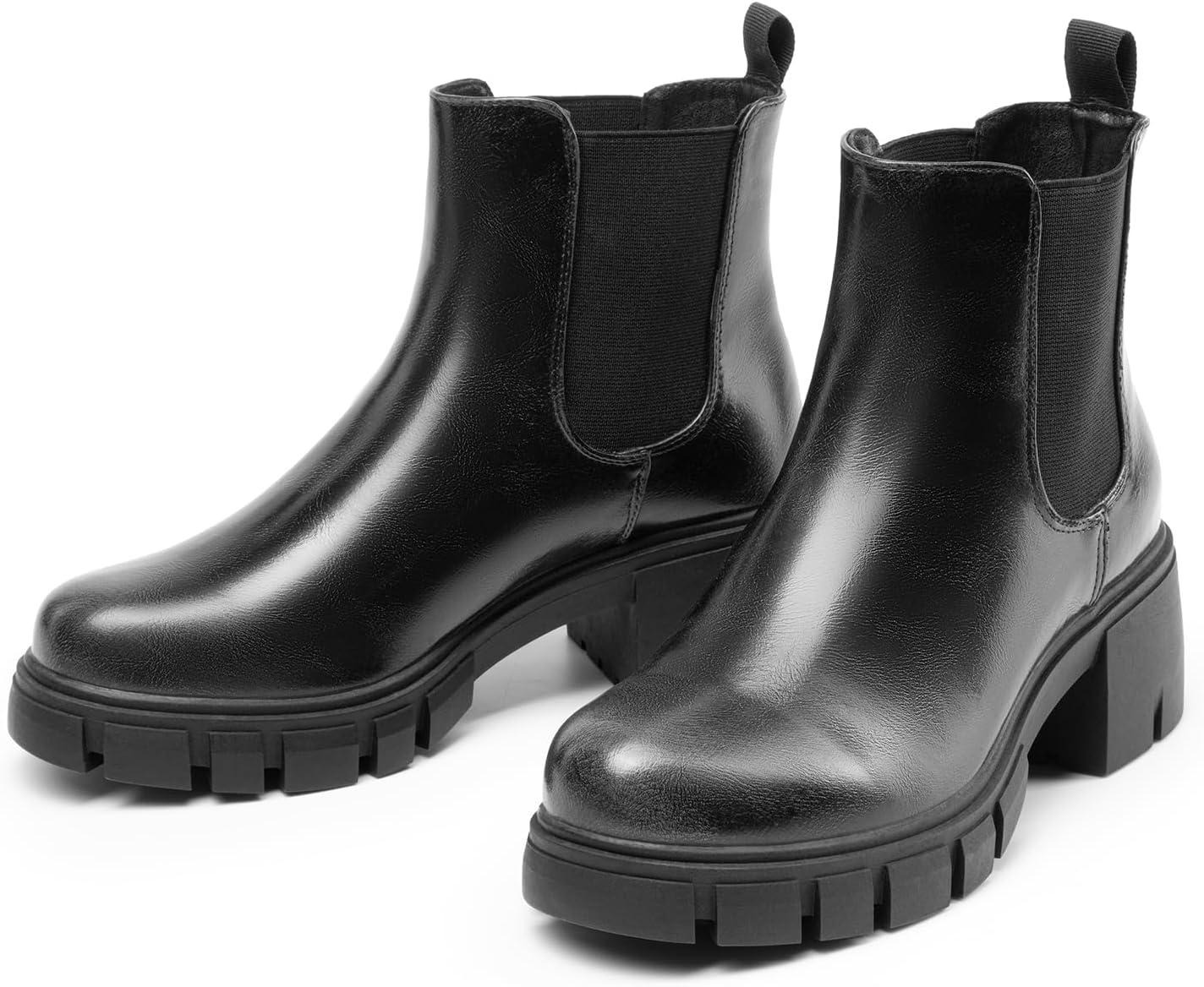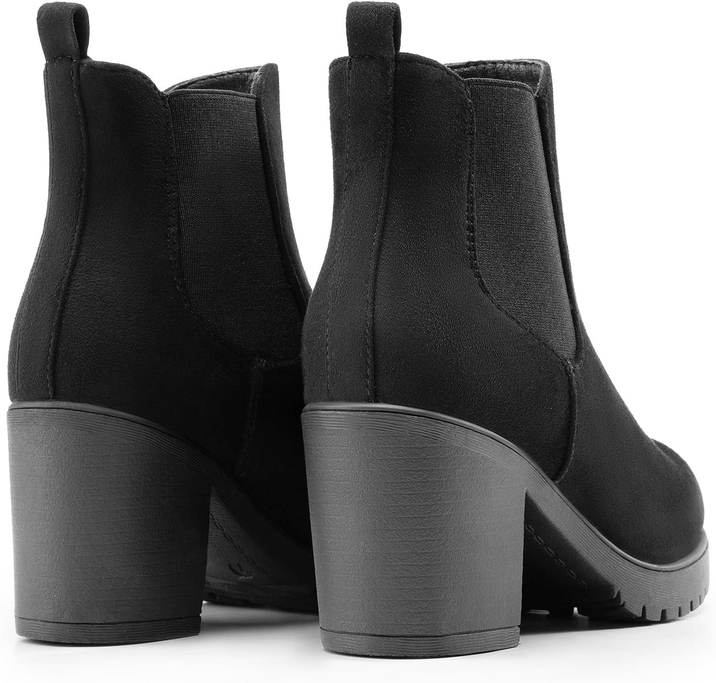 DREAM PAIRS Women’s Stomp High Heel Ankle Boots(Black)