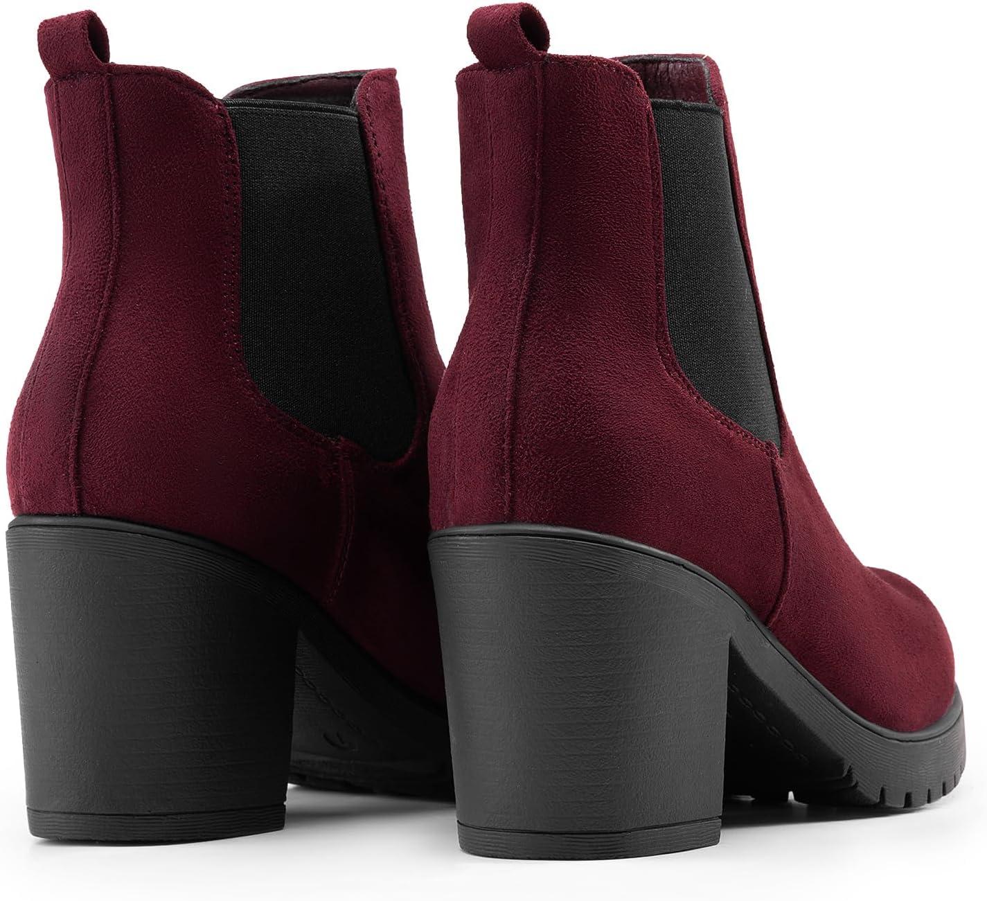 DREAM PAIRS Women’s Stomp High Heel Ankle Boots(Burgundy)