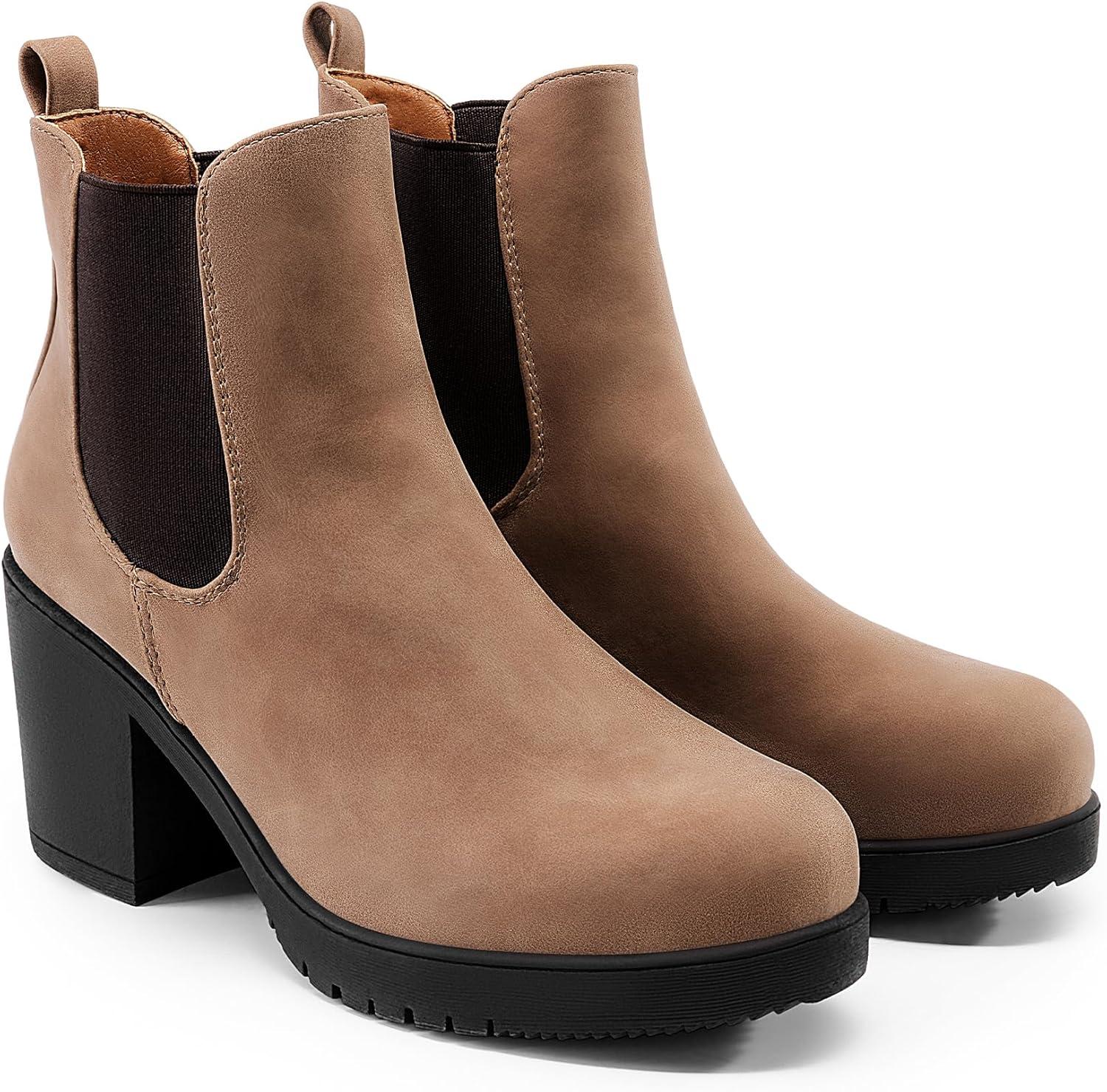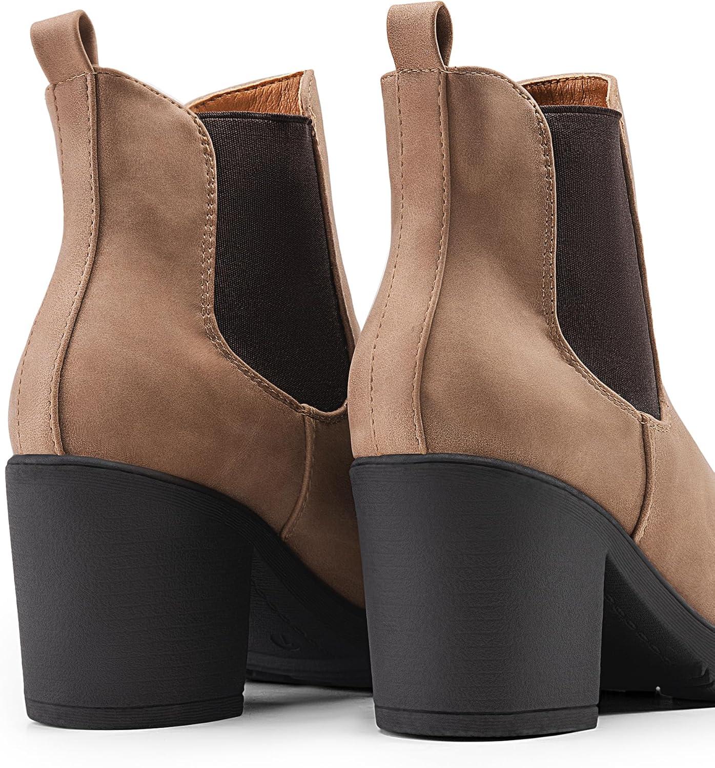 TOETOS Women’s Chunky High Heel Ankle Boots Close Toe Fall Heeled Booties Shoes(Taupe)