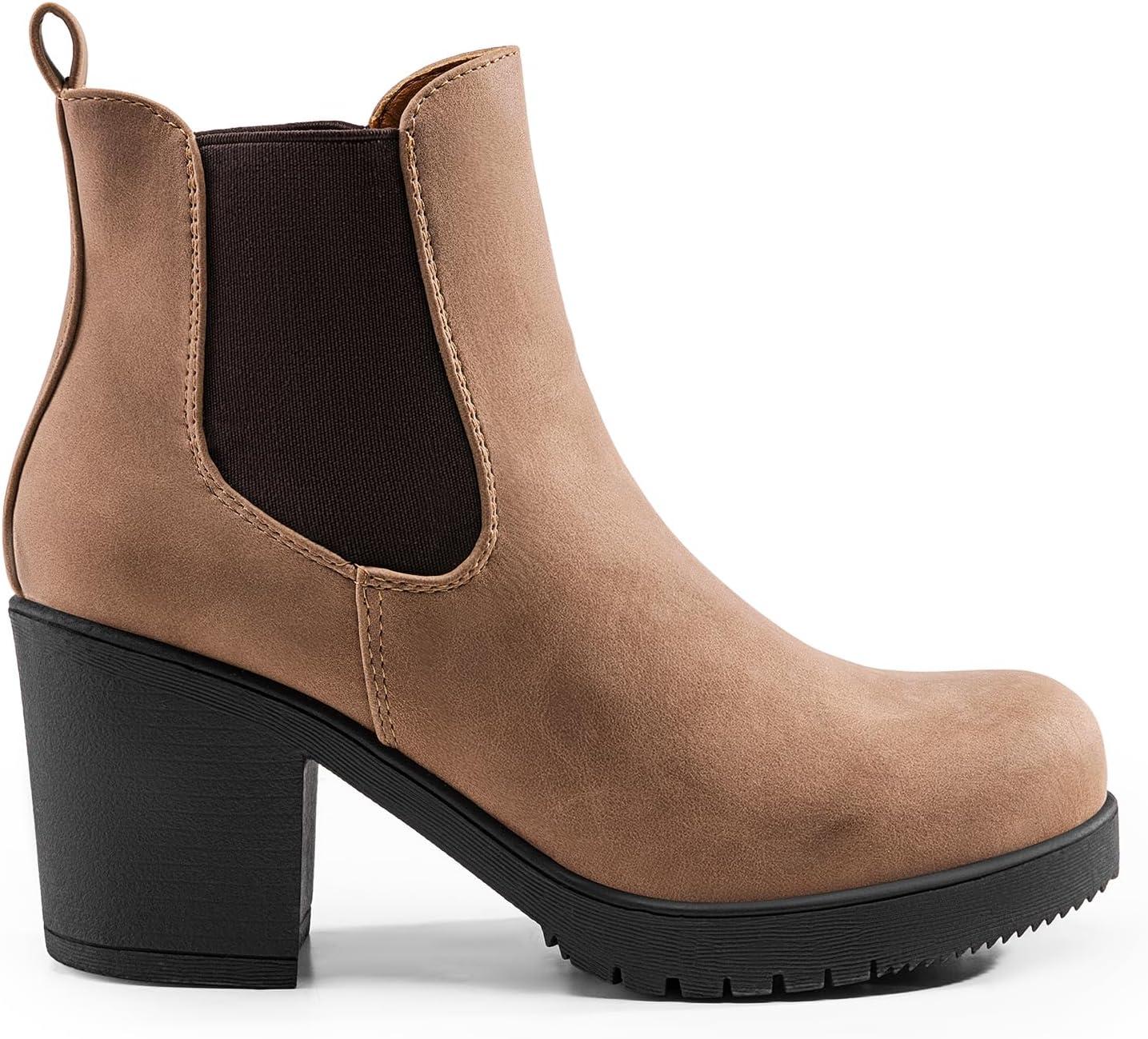 TOETOS Women’s Chunky High Heel Ankle Boots Close Toe Fall Heeled Booties Shoes(Tan)