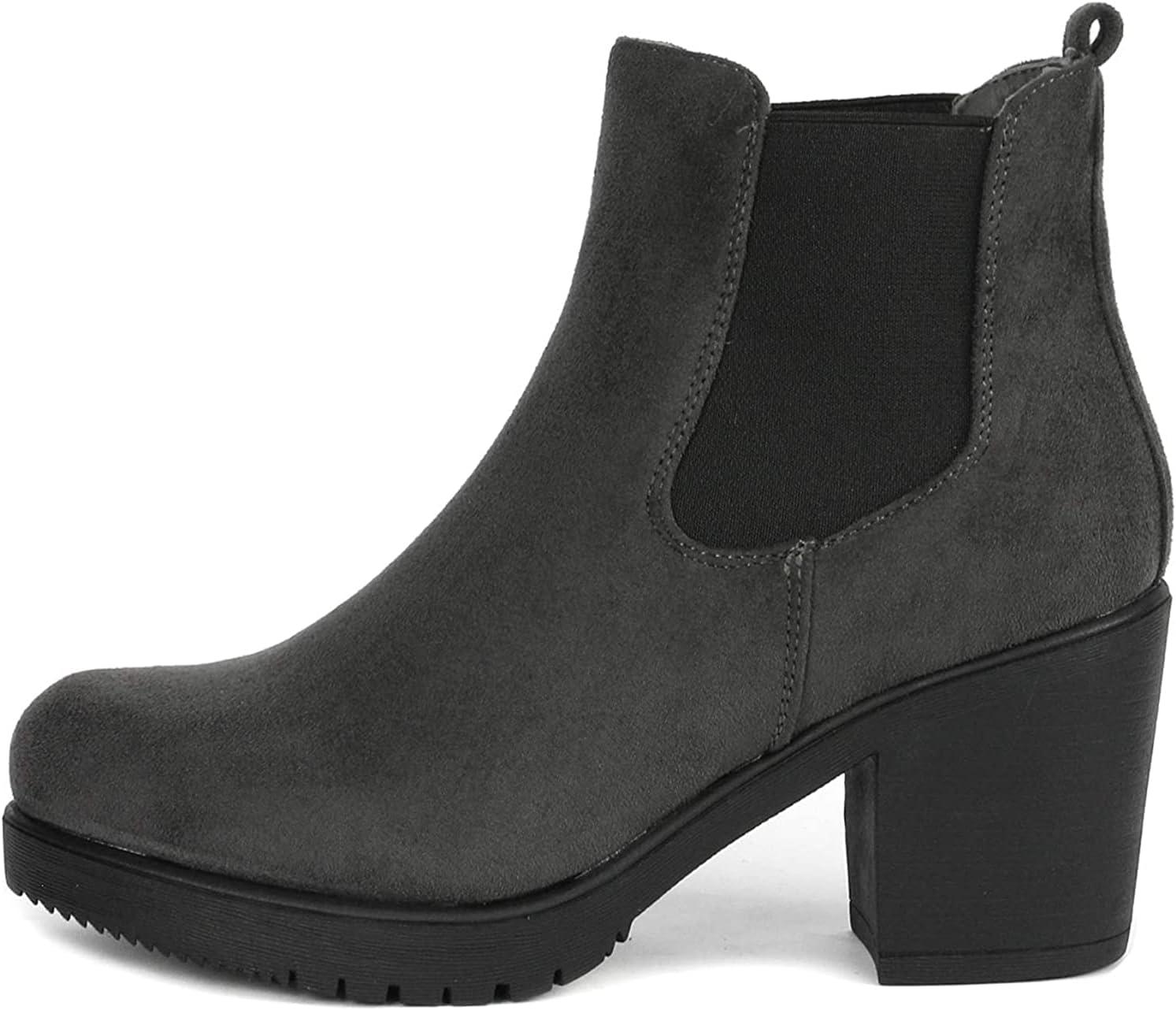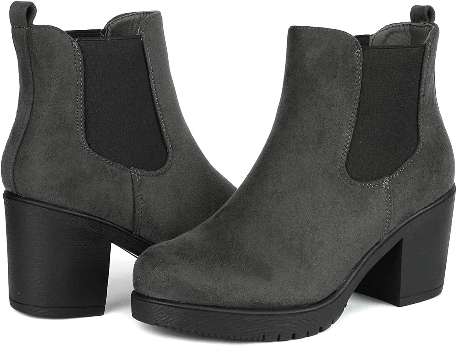 TOETOS Women’s Chunky High Heel Ankle Boots Close Toe Fall Heeled Booties Shoes(Grey)