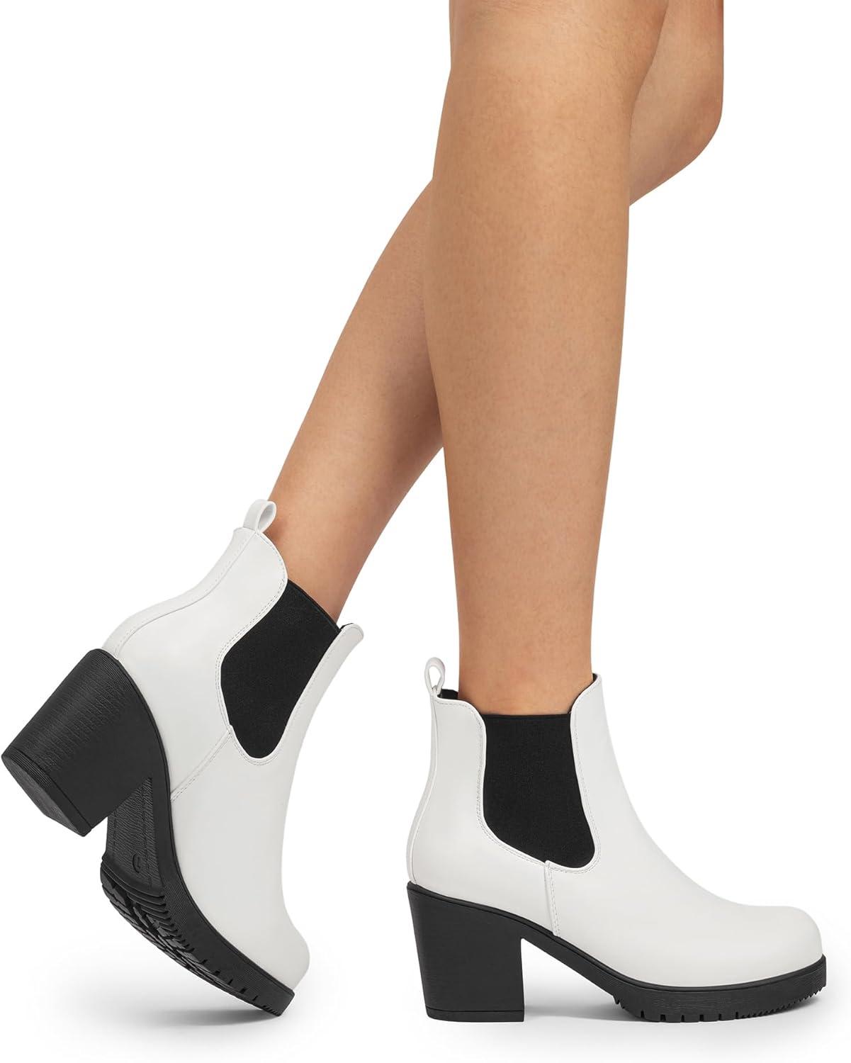 DREAM PAIRS Women’s Stomp High Heel Ankle Boots(White/Pu)