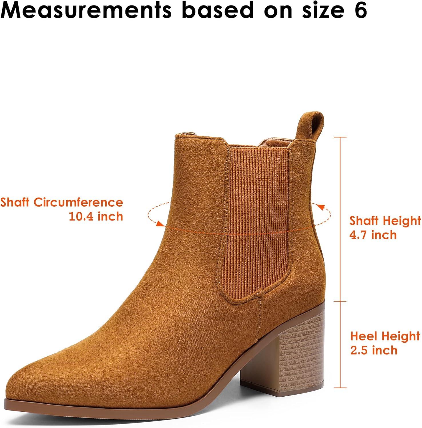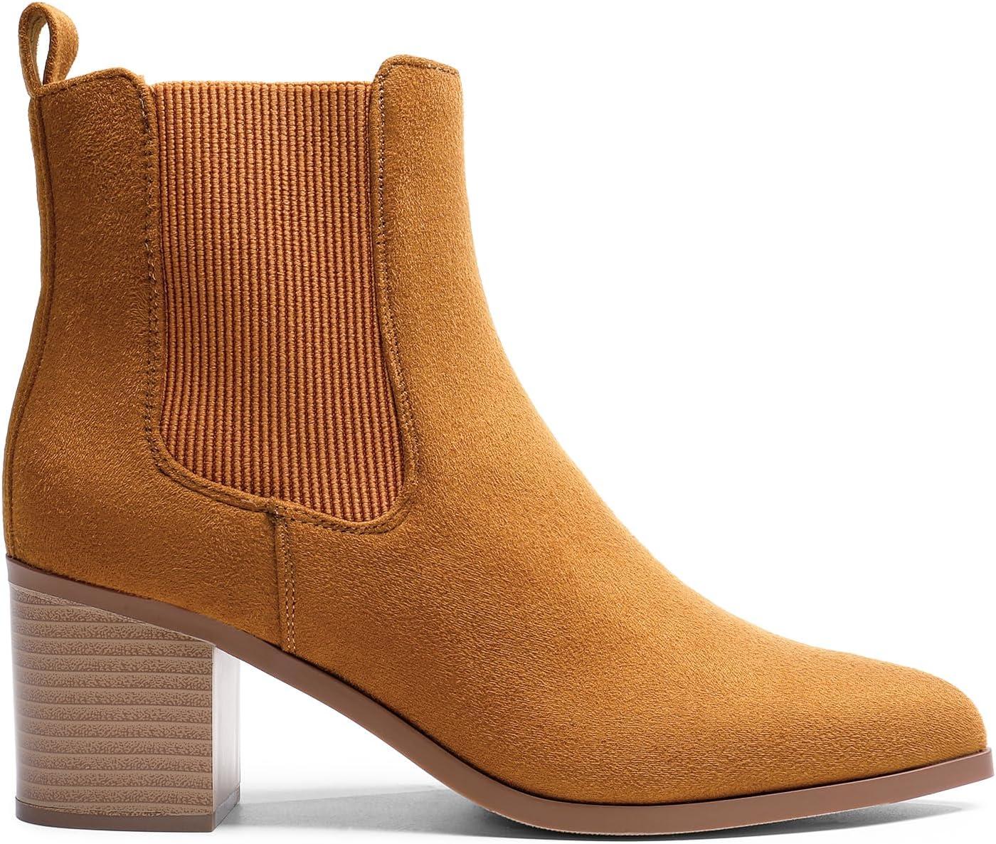 DREAM PAIRS Women’s Retro Elastic Chelsea Ankle Boots Fashion Low Chunky Block Heel Pointed Toe Fall Heeled Booties Shoes(Tan-suede)