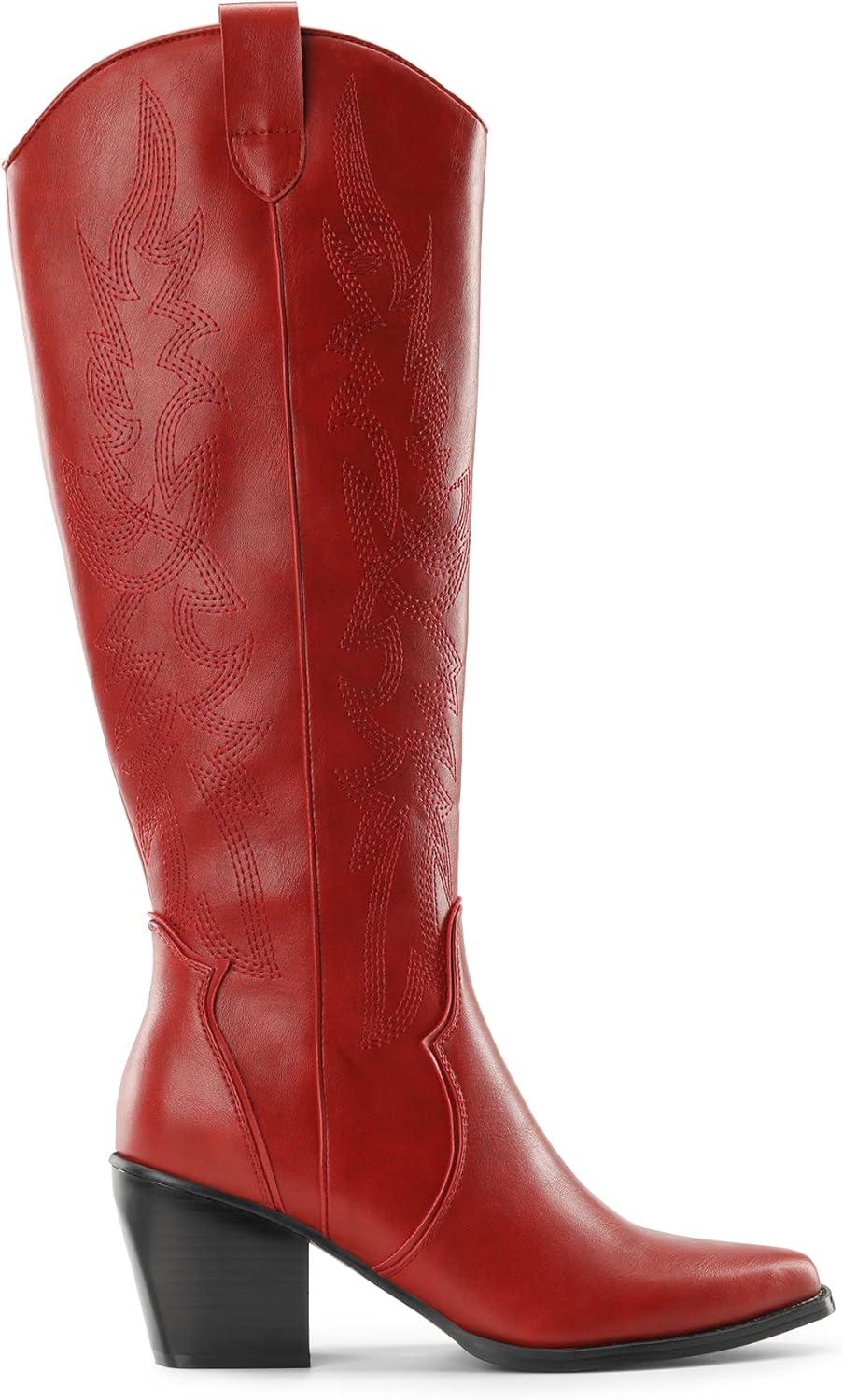 - Save big on DREAM PAIRS Women's Square Toe Cowboy Cowgirl Boots Pull On Low Chunky Heel Mid Calf Western Boots with Embroidered Stitched for Theme Party Country Concert(Red) during our summer blowout sale. Limited quantities available.