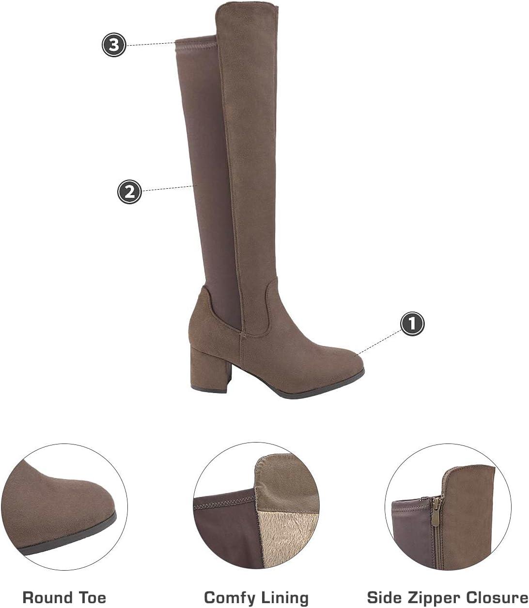 DREAM PAIRS Women’s Knee High Stretchy Fashion Boots(Tan-suede)