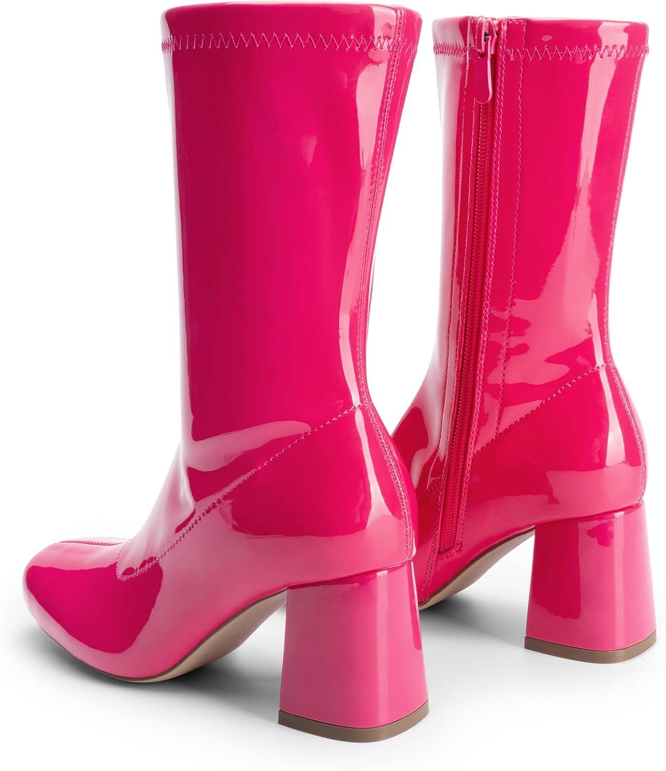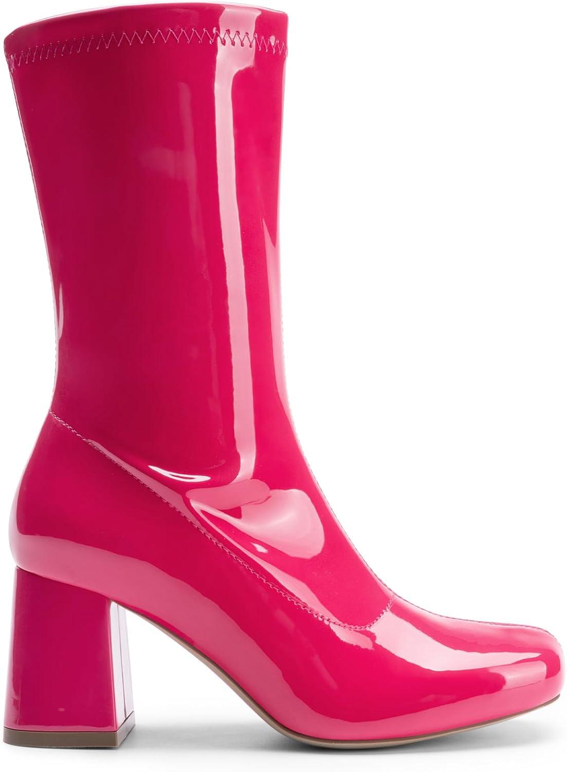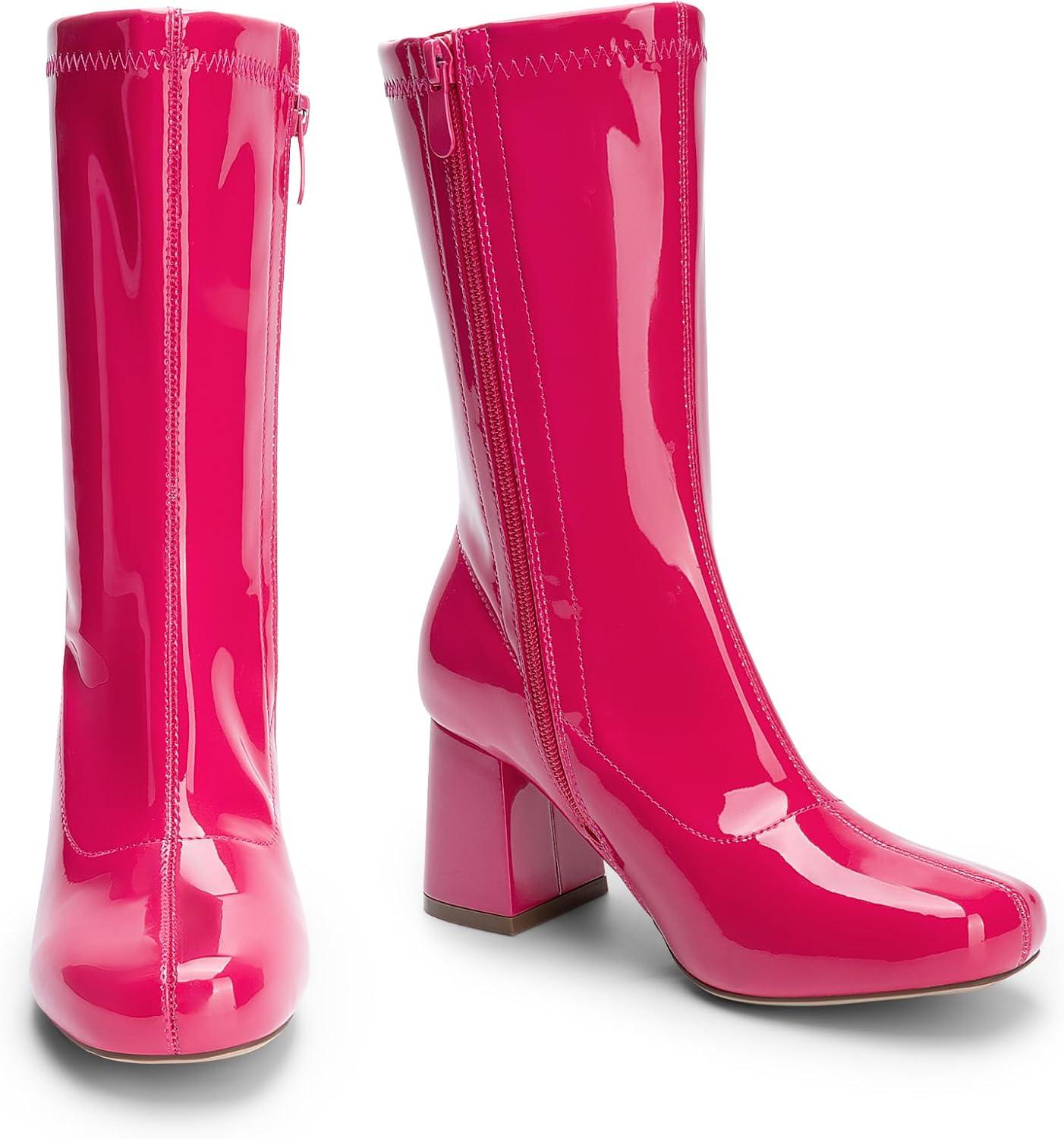 DREAM PAIRS Women’s Mid Calf Gogo Boots Low Block Heel Square Toe Ankle Boot with Zipper for Party Cosplay Dance(Hot Pink)