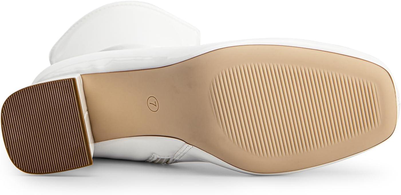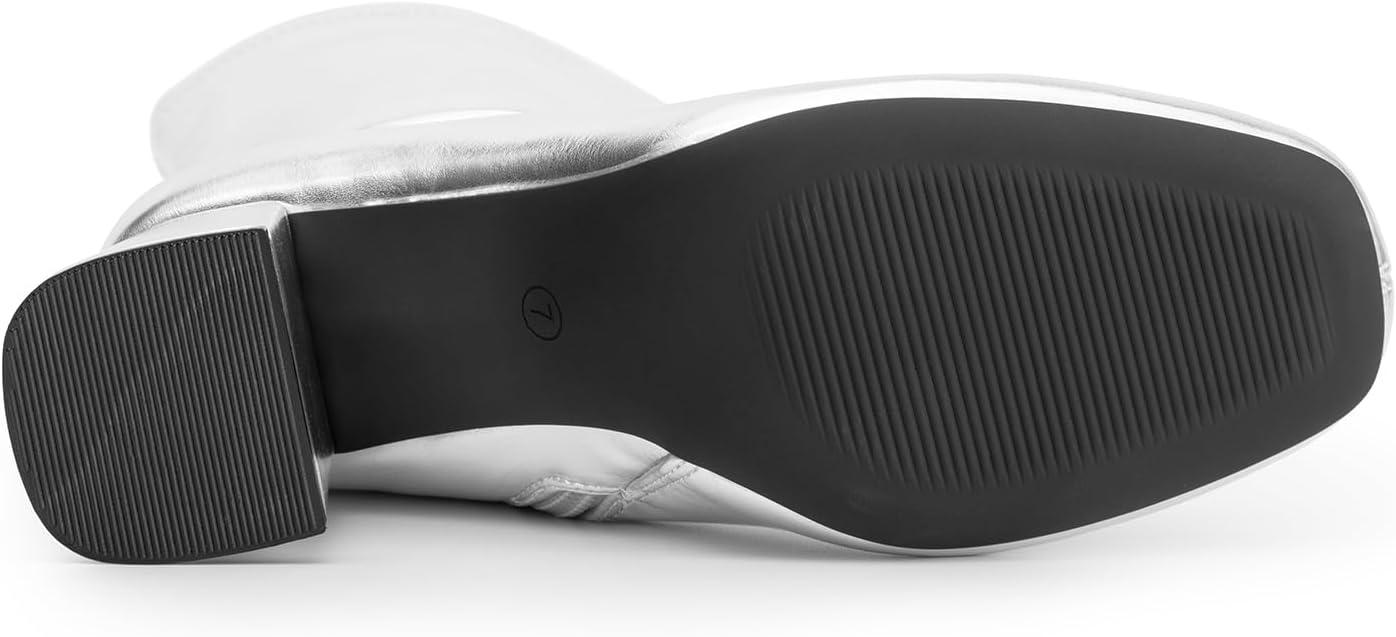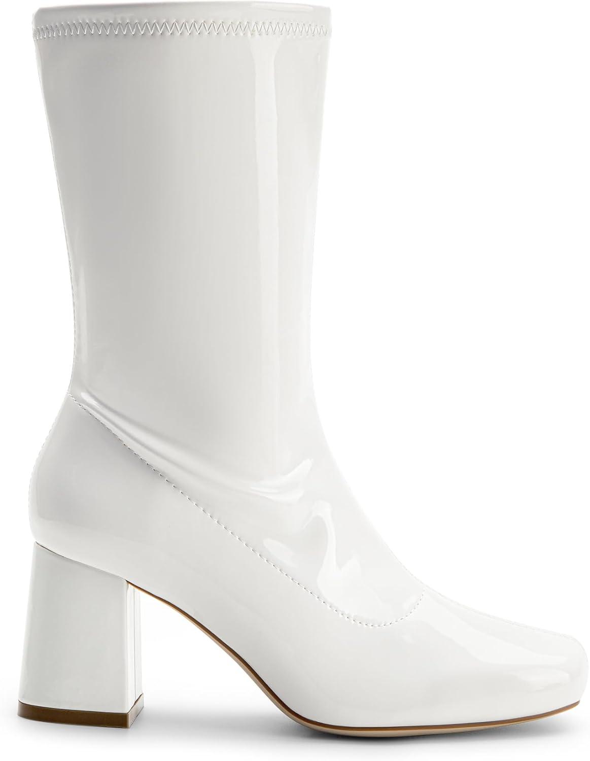 DREAM PAIRS Women’s Mid Calf Gogo Boots Low Block Heel Square Toe Ankle Boot with Zipper for Party Cosplay Dance(White-pat)