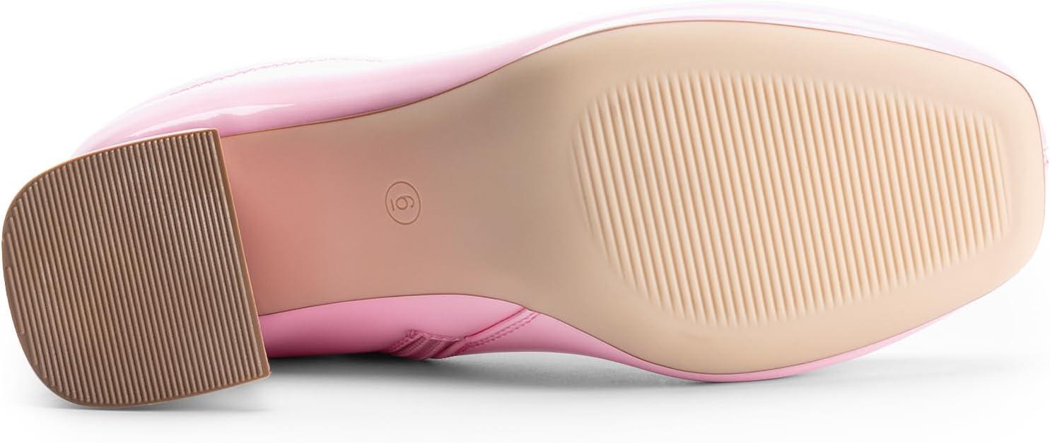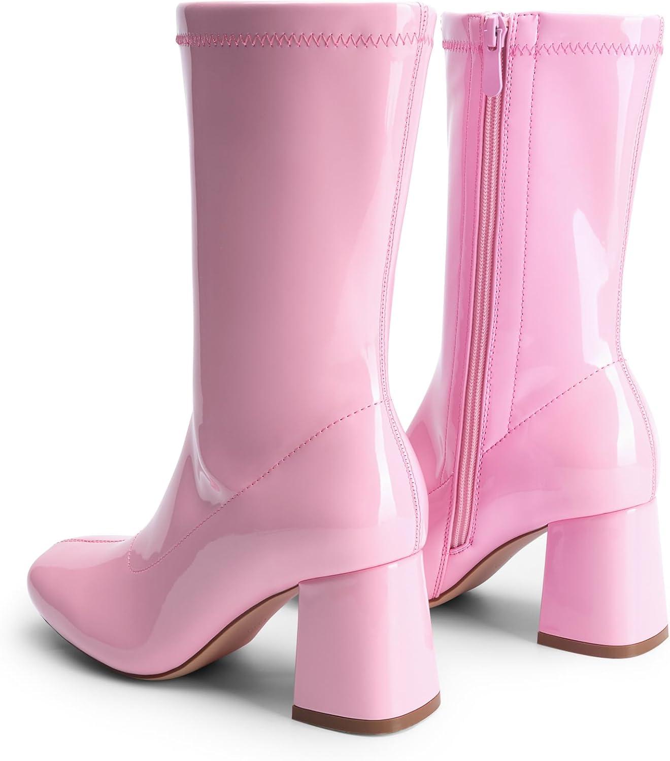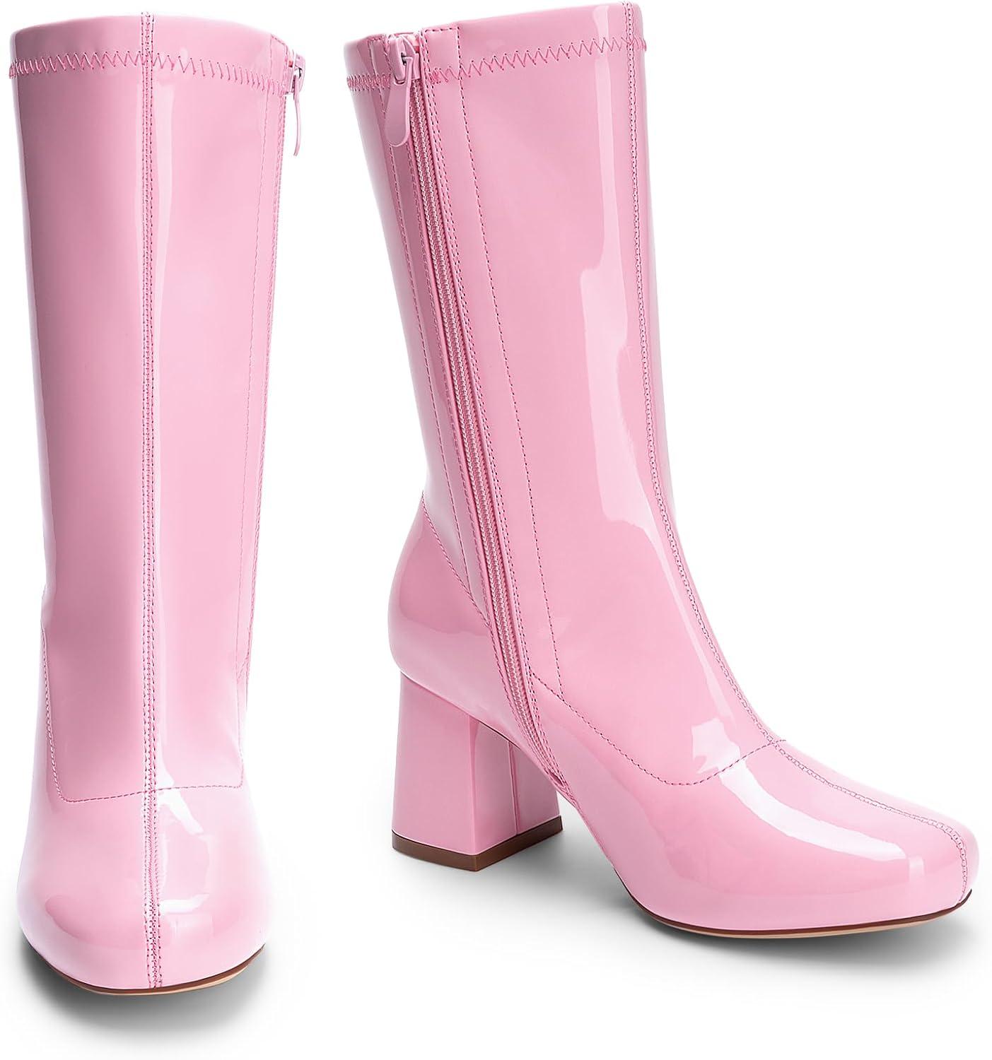 DREAM PAIRS Women’s Mid Calf Gogo Boots Low Block Heel Square Toe Ankle Boot with Zipper for Party Cosplay Dance(Pink)