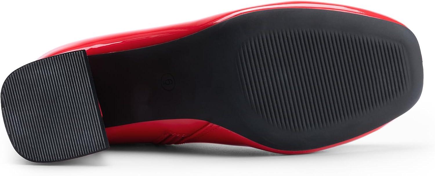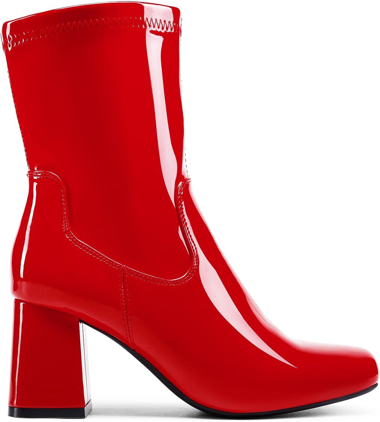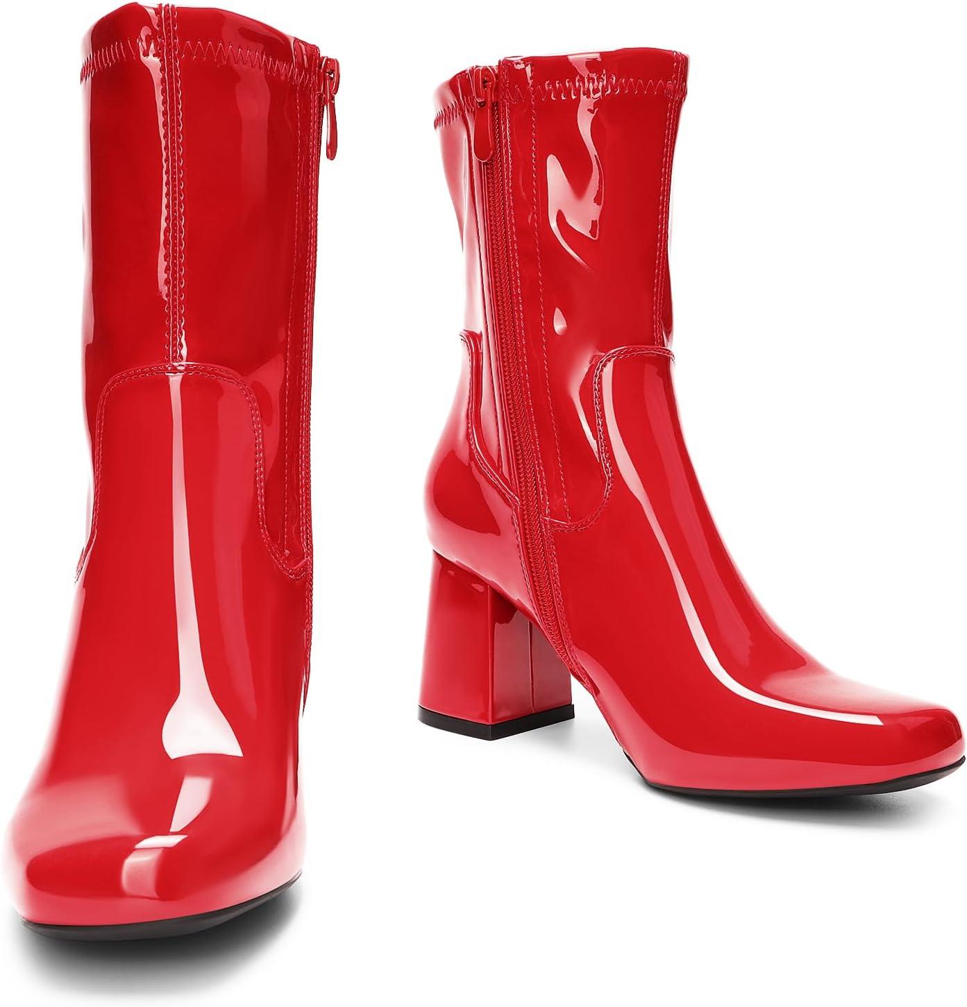 DREAM PAIRS Women’s Mid Calf Gogo Boots Low Block Heel Square Toe Ankle Boot with Zipper for Party Cosplay Dance(Red-pat)