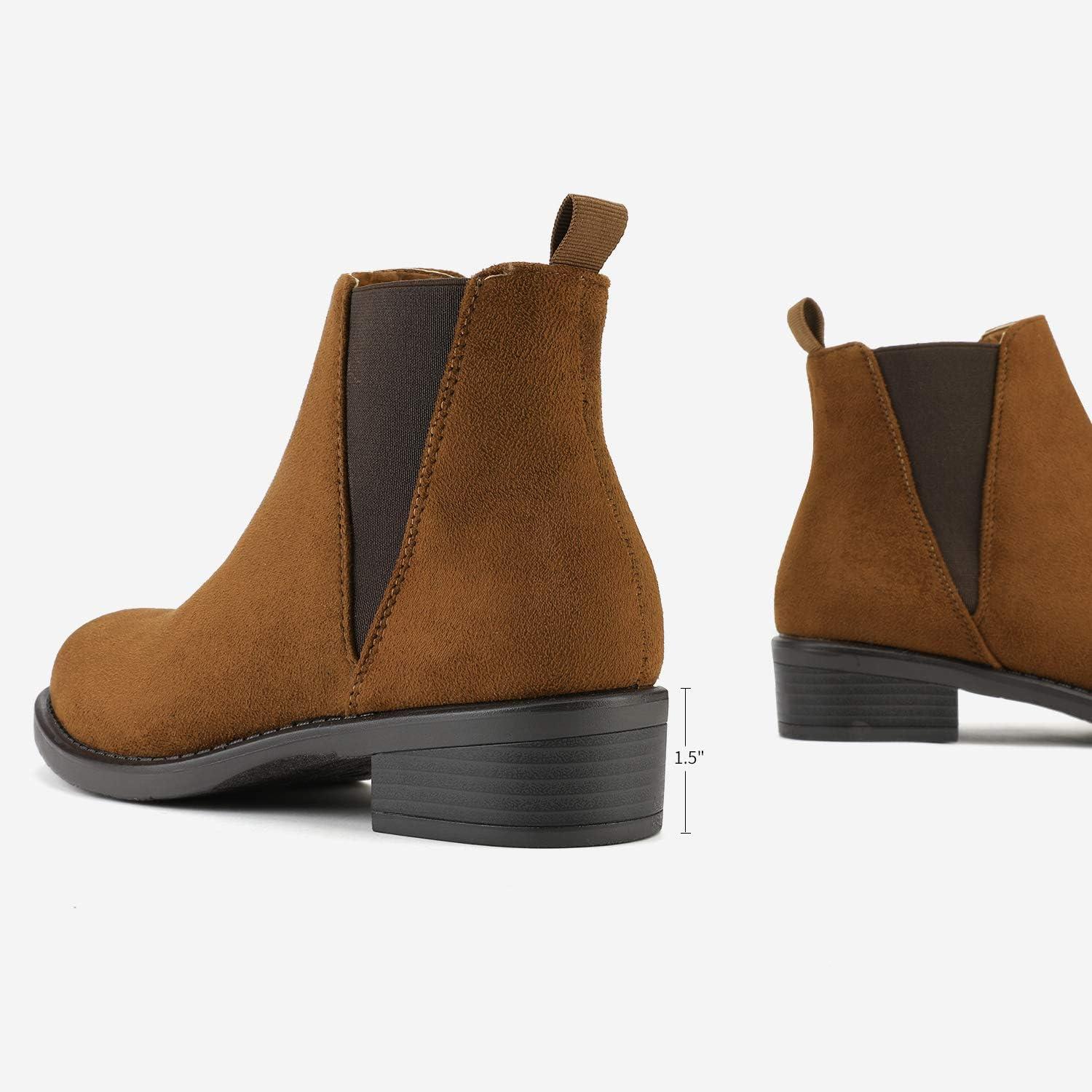 Get the DREAM PAIRS Women's Ankle Boots Chunky Low Heel Chelsea Booties Slip On Elastic Fall Short Boots(Brown/Pu) you want at a price you can afford with our markdown sale.