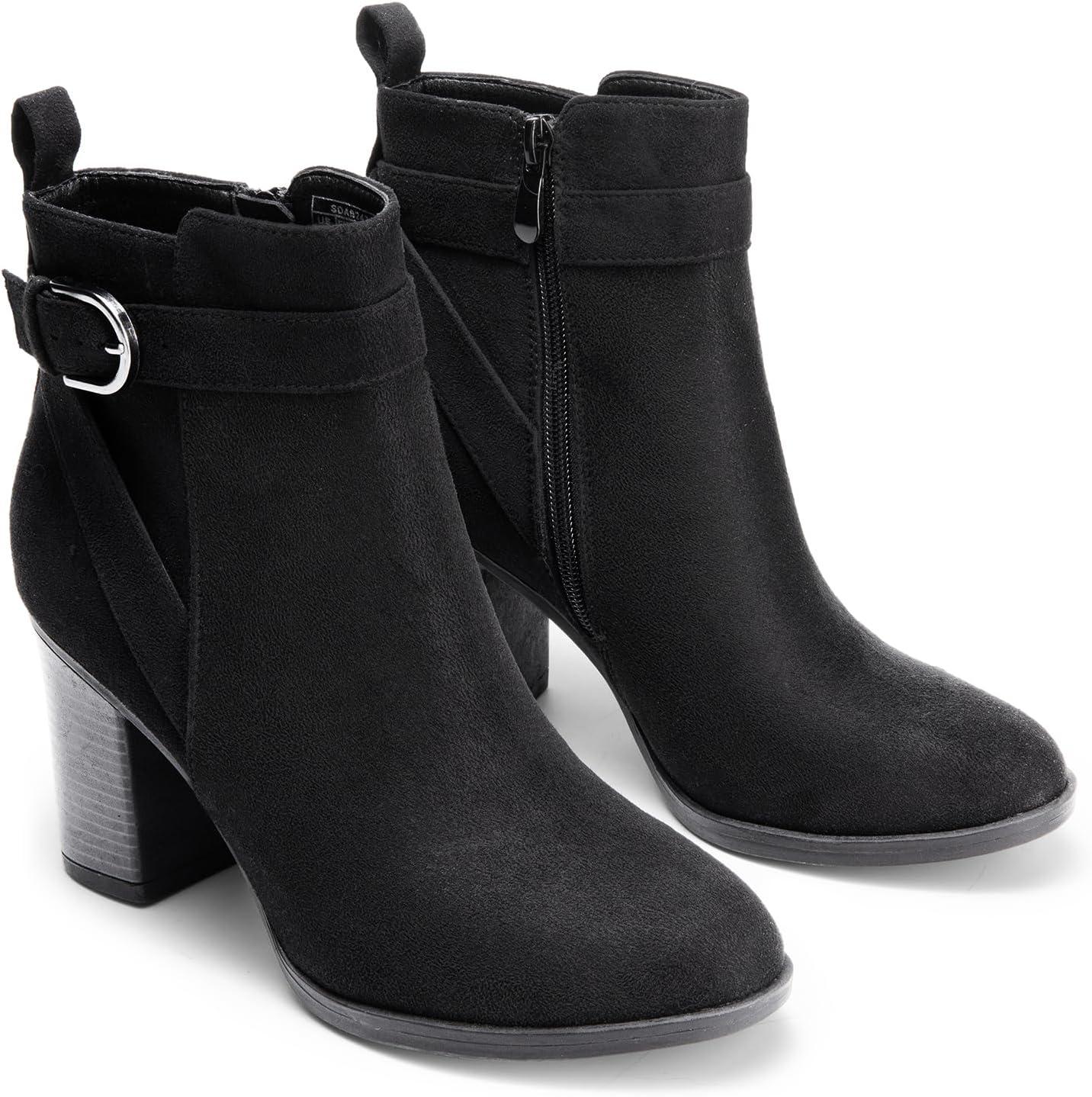 Get your hands on our exclusive DREAM PAIRS Women's Chunky High Heel Ankle Boots Round Toe Fall Short Booties Shoes(Black-suede) collection, now at a discounted price.