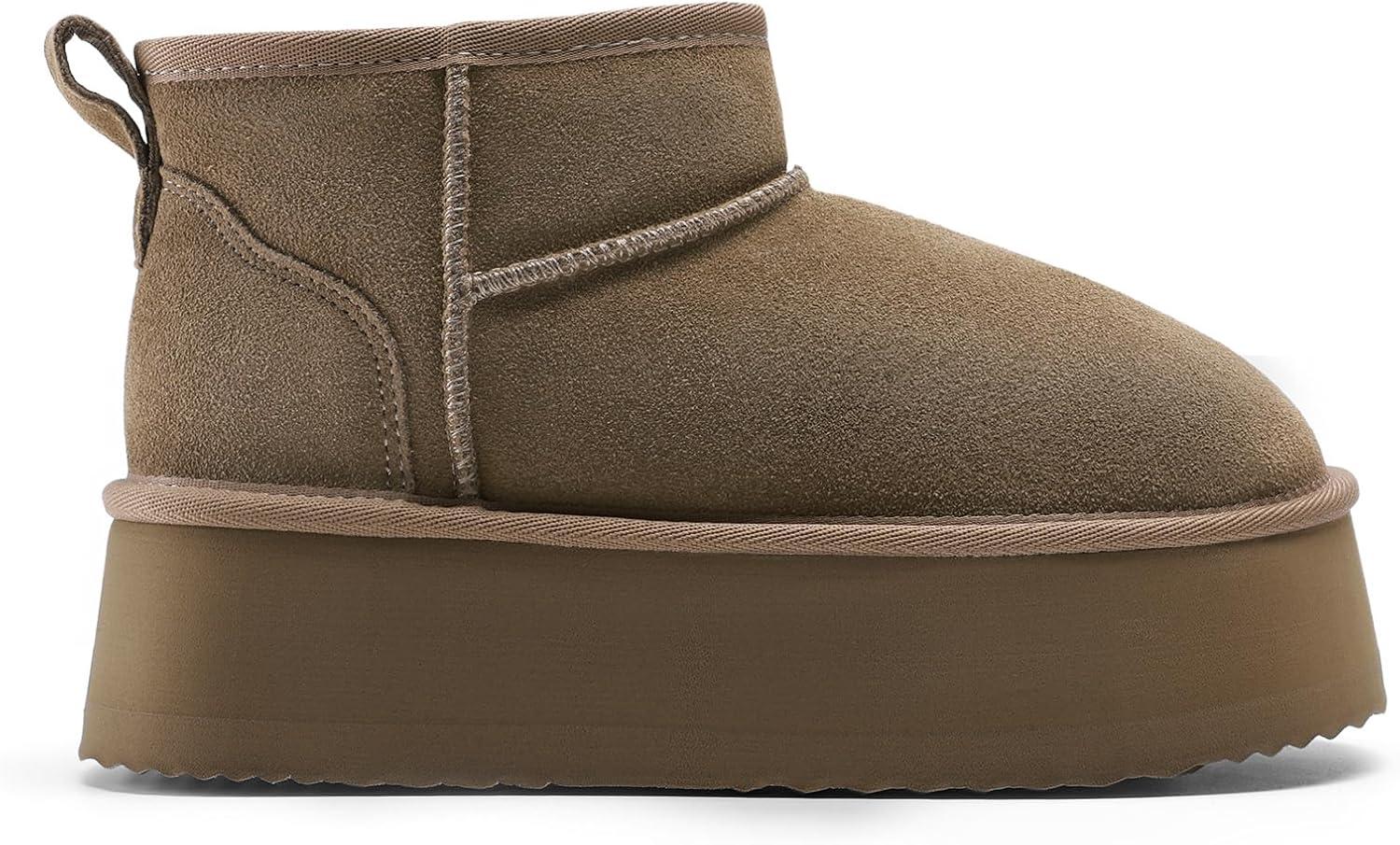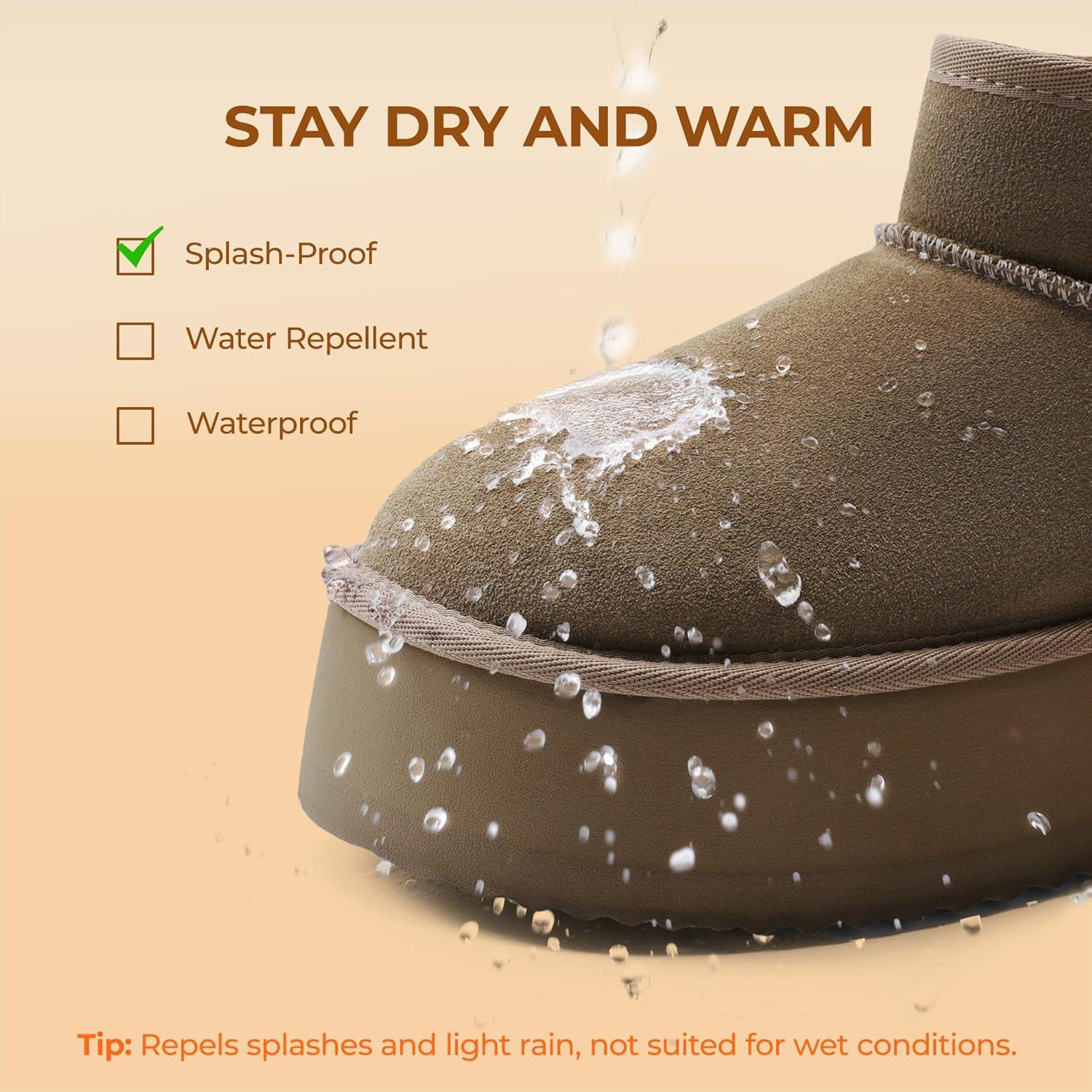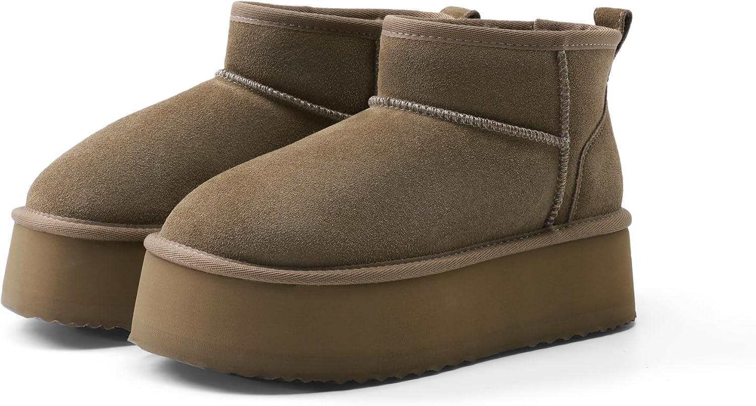 DREAM PAIRS Platform Winter Boots for Women Genuine Suede, Wide Toe Water Slip Resistant Ankle Mini Snow Boots Lined Fur with Lightweigt Memory Foam Insole Outdoor(Taupe)