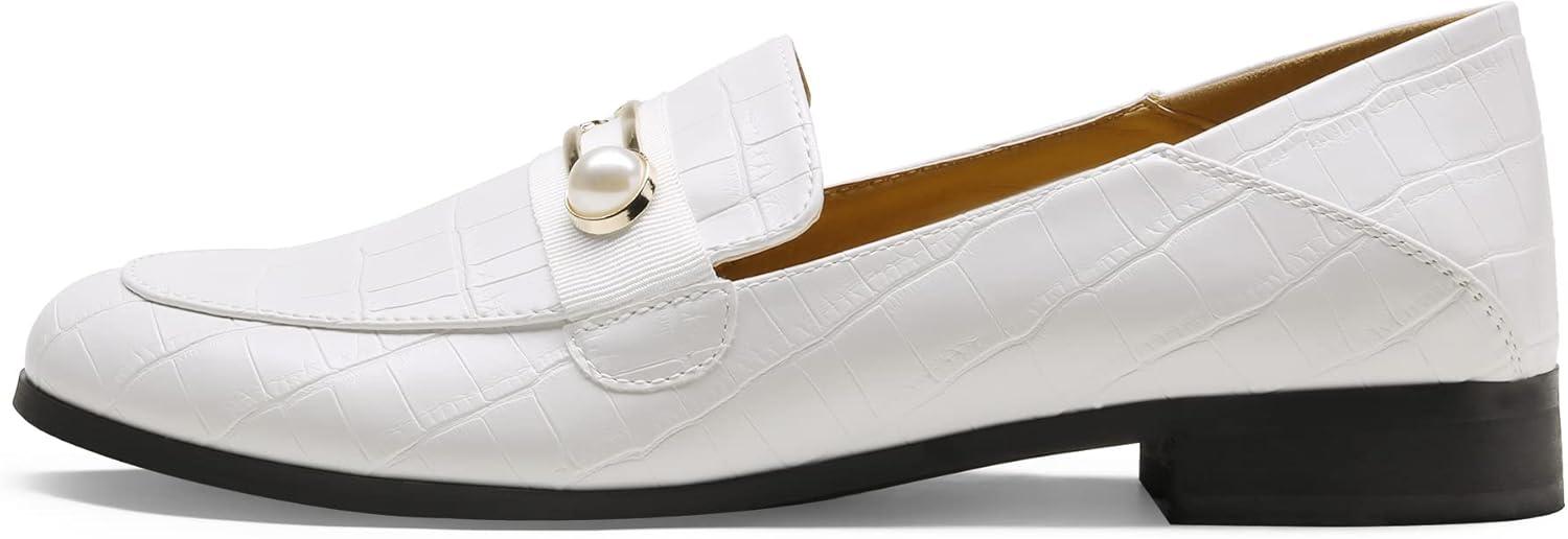 DREAM PAIRS Loafers for Women Slip On Comfortable Round Toe Casual Fashion Flats Dressy Shoes(Beige White Stone/Pu)