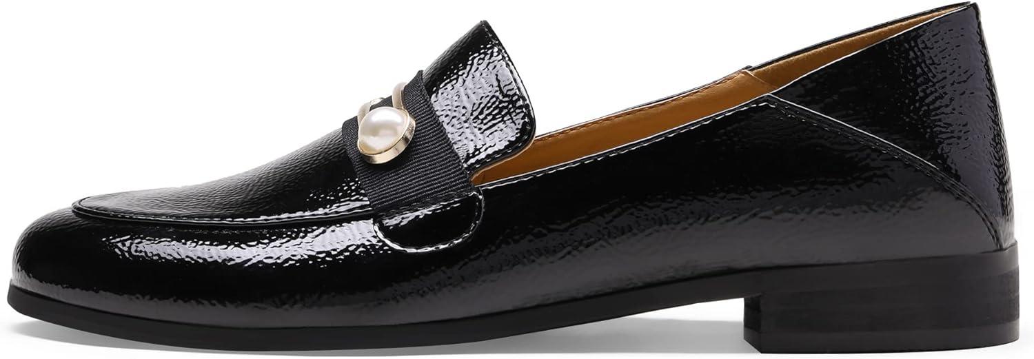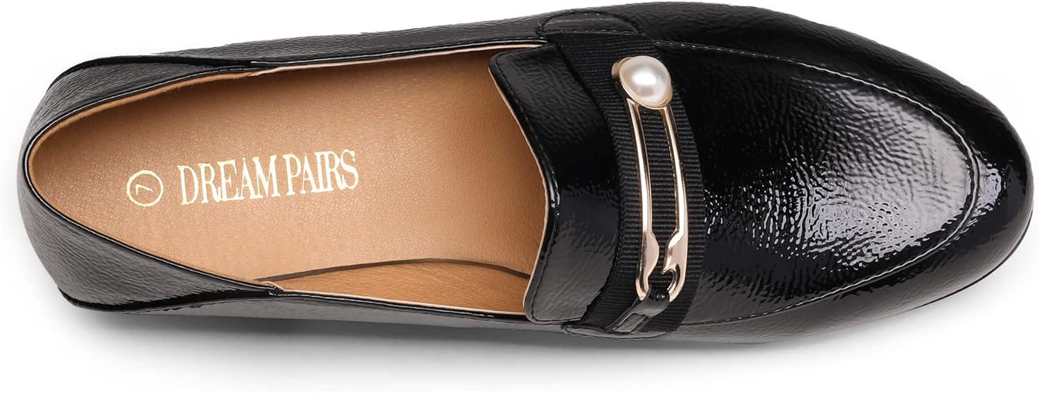 DREAM PAIRS Loafers for Women Slip On Comfortable Round Toe Casual Fashion Flats Dressy Shoes(Black/Patent/Leather)