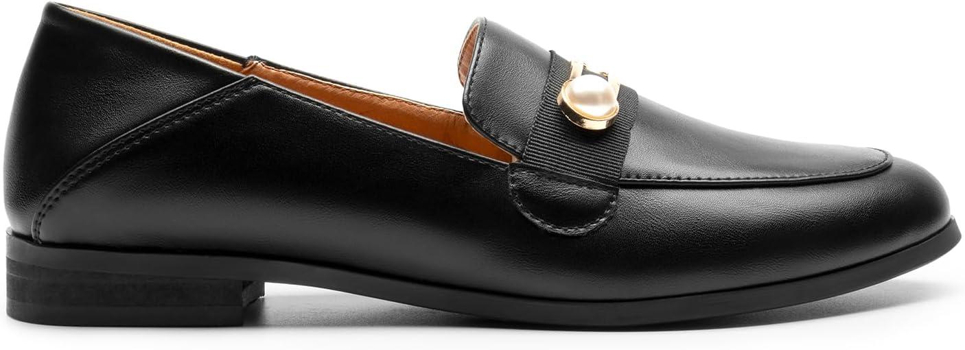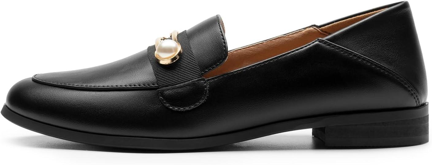 DREAM PAIRS Loafers for Women Slip On Comfortable Round Toe Casual Fashion Flats Dressy Shoes(Black Stone/Pu)