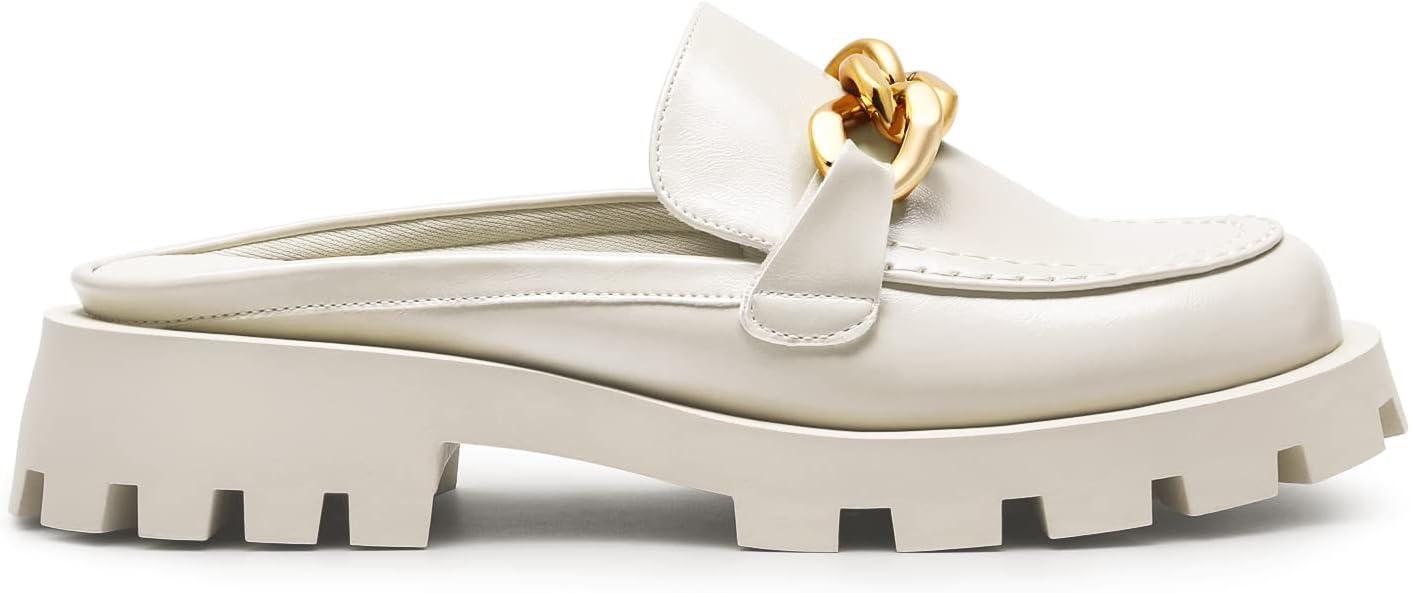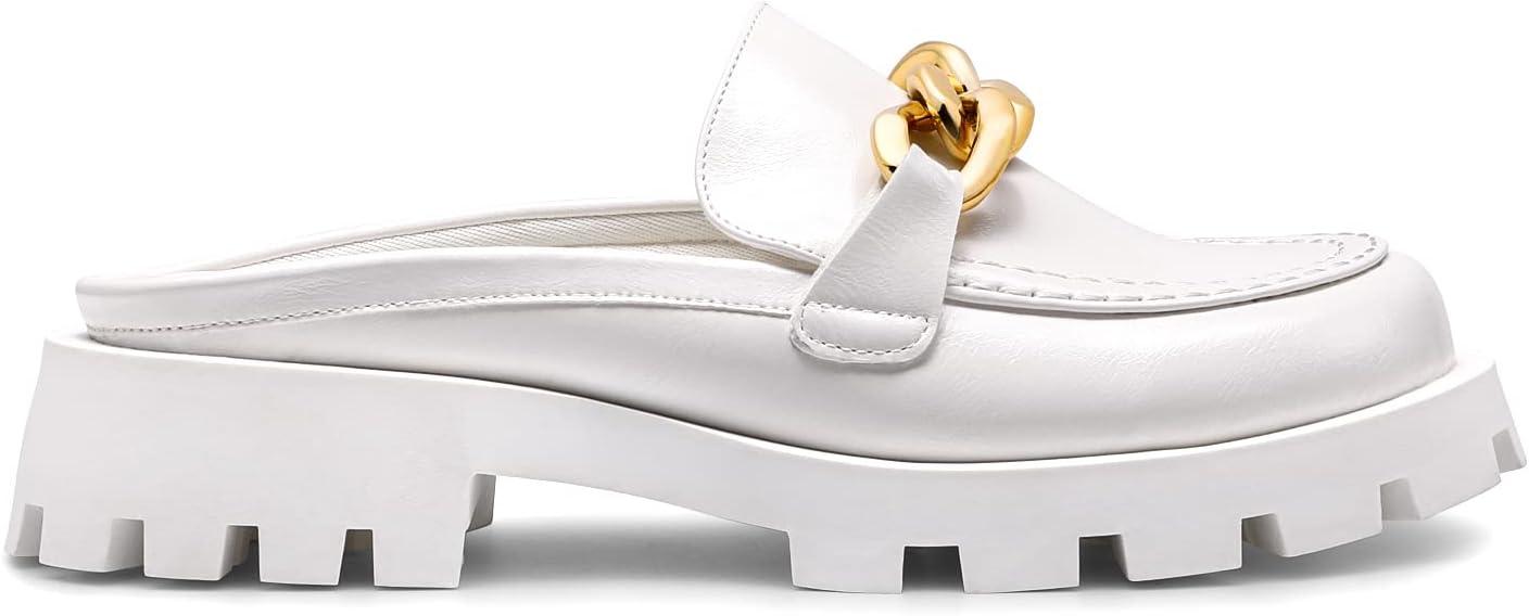DREAM PAIRS Mules for Women, Comfortable Loafer Mules Slip On Chunky Business Casual Shoes(White)