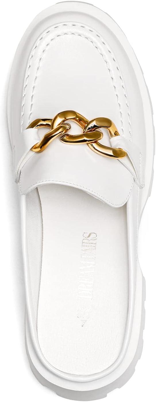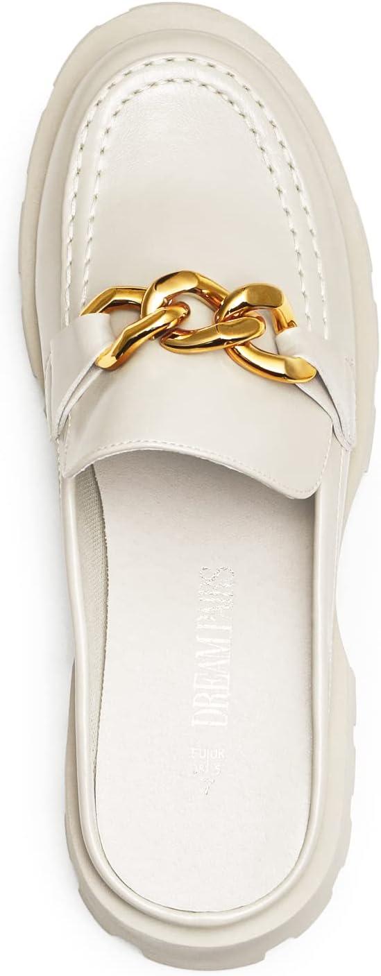 DREAM PAIRS Mules for Women Slip On Shoes Platform Thick Comfortable Women’s Chunky Flat Slides Slippers Loafers(White)