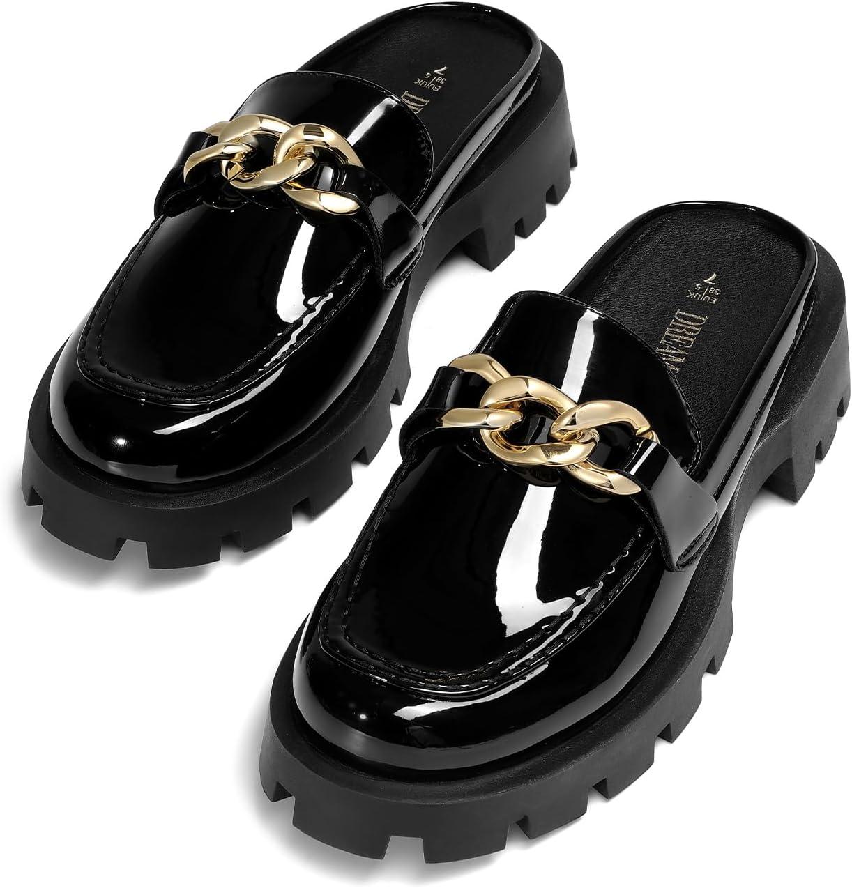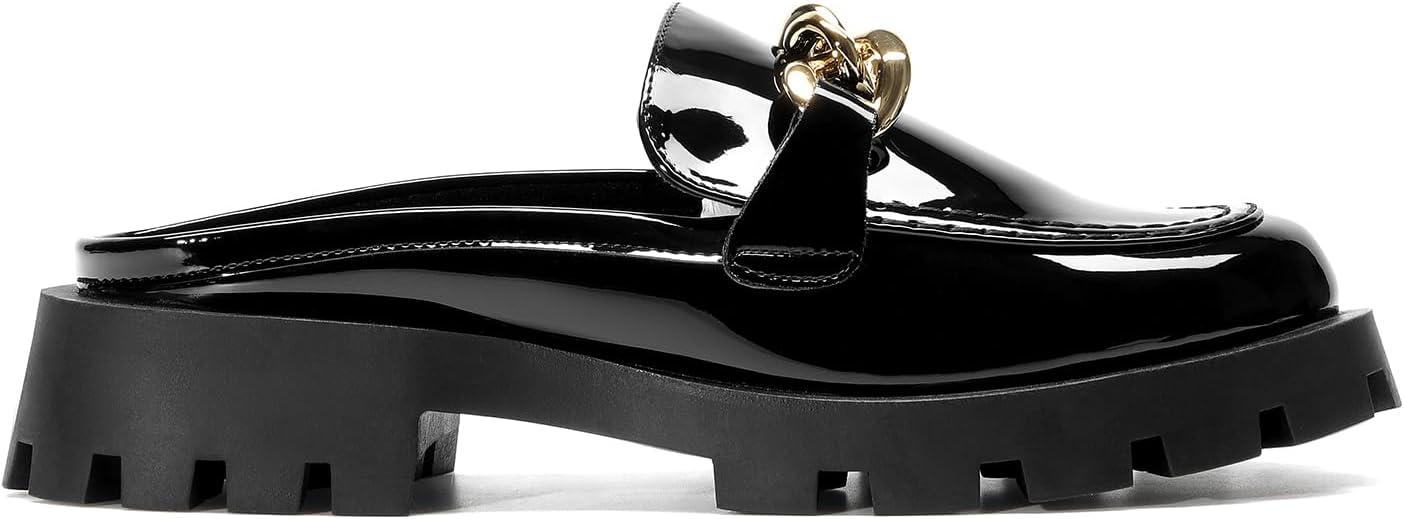 DREAM PAIRS Mules for Women Slip On Shoes Platform Thick Comfortable Women’s Chunky Flat Slides Slippers Loafers(Black-pat)