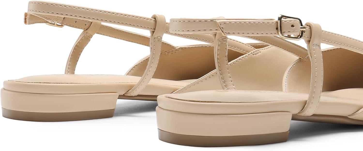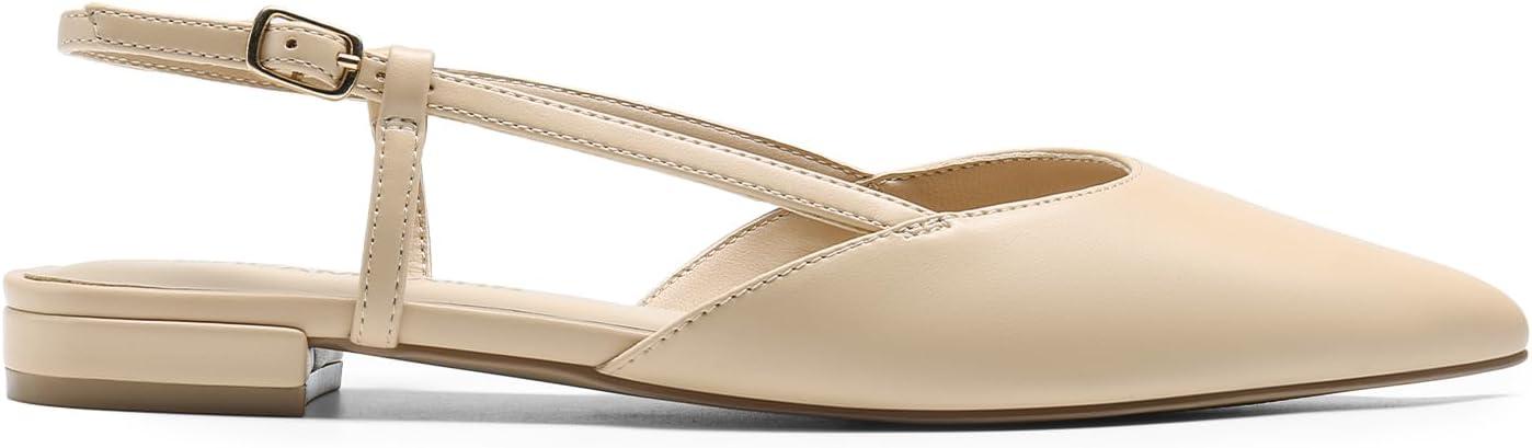 DREAM PAIRS Slingback Flats for Women, Pointed-Toe Elegant Women’s Ballet Flats with Buckle Strap, Classic Low Heel Dress Shoes for Casual Work Office Party(Nude-pu)