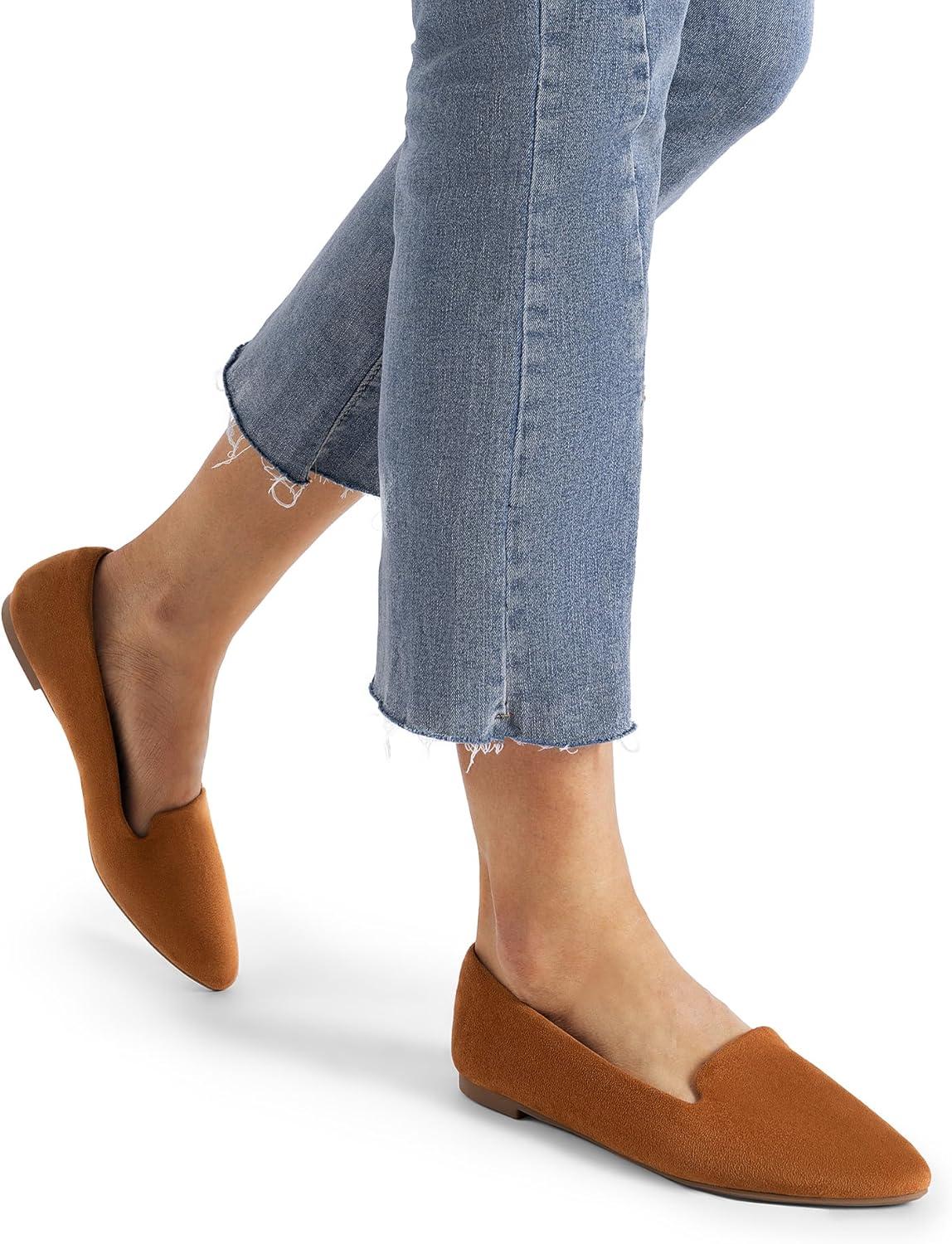 DREAM PAIRS Women’s Flats, Pointed Toe Slip-On Dressy Flat Shoes, Comfortable Business Casual Dress Shoes for Office Work(Brown)