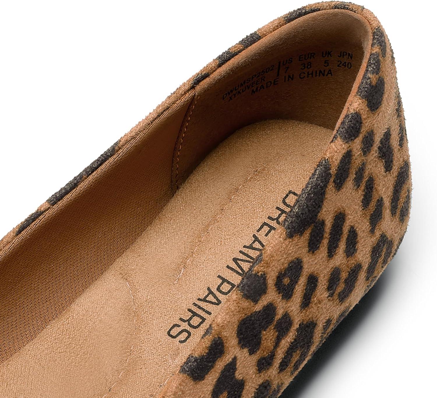 DREAM PAIRS Women’s Flats, Pointed Toe Slip-On Dressy Flat Shoes, Comfortable Business Casual Dress Shoes for Office Work(Leopard)