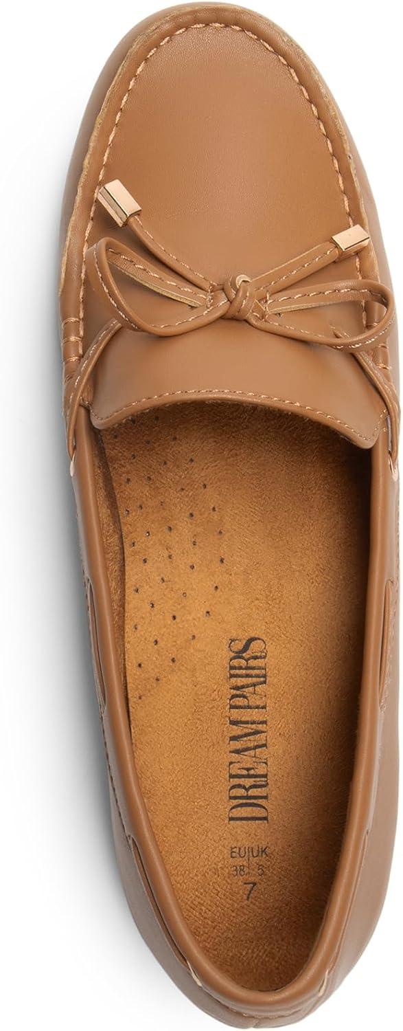 DREAM PAIRS Women’s Loafers Comfortable Dressy Slip-on Business Casual Work Shoes Bow-Knot Office Driving Round Toe Flats Loafers(Tan)