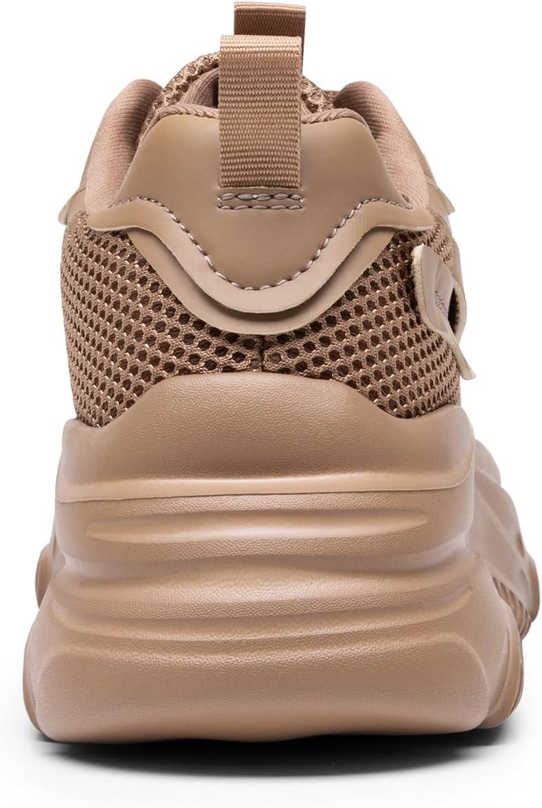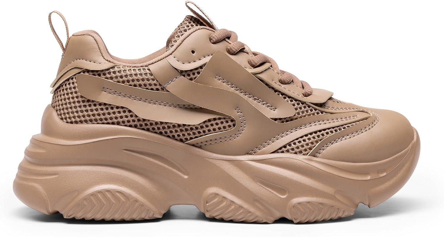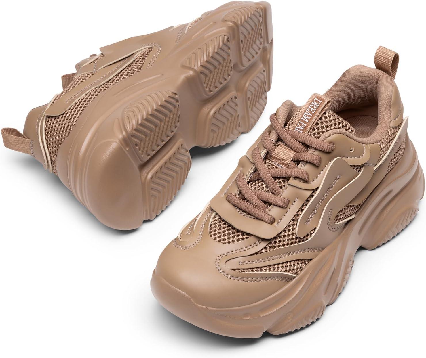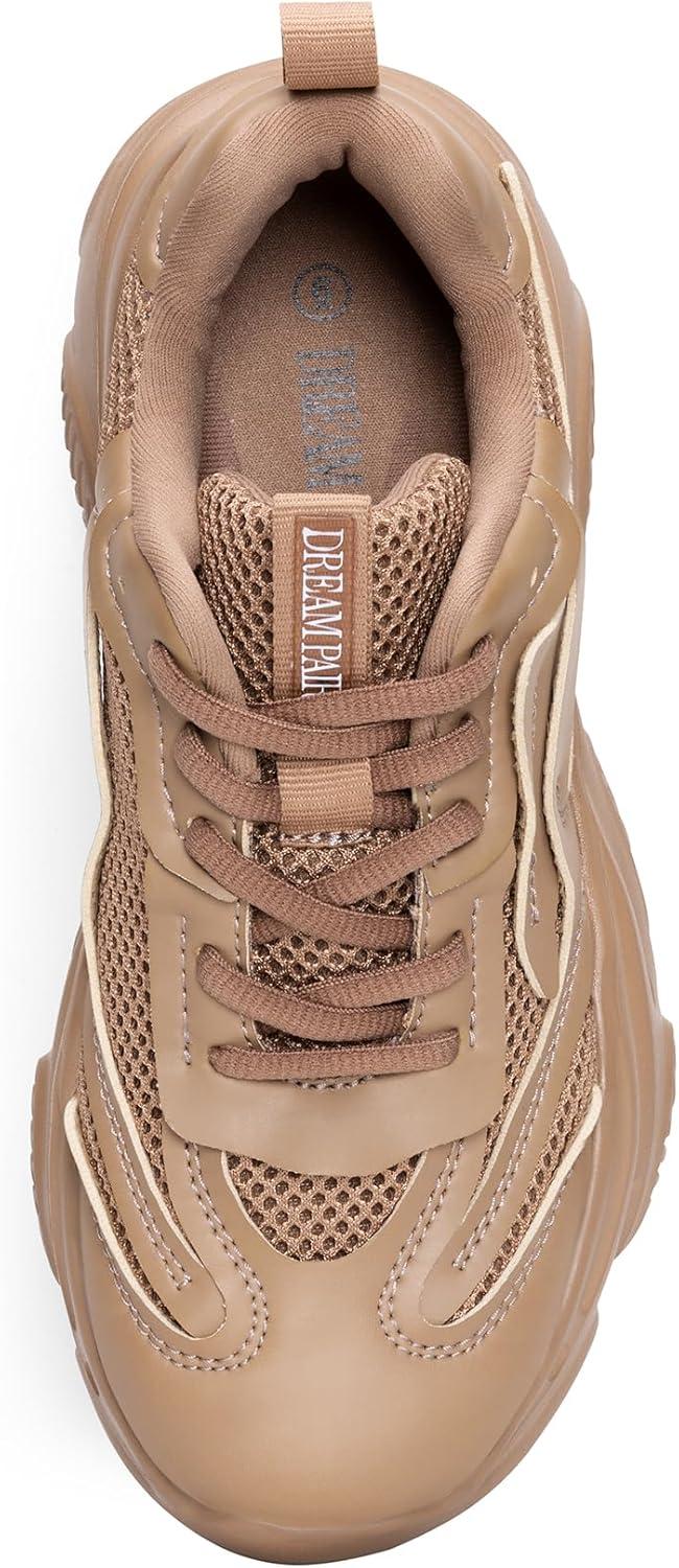 DREAM PAIRS Women’s Platform Chunky Fashion Sneakers Jaxon Walking Lace-Up Comfortable Dad Sneakers Workout Sport Work Casual Tennis Shoes(Tan)