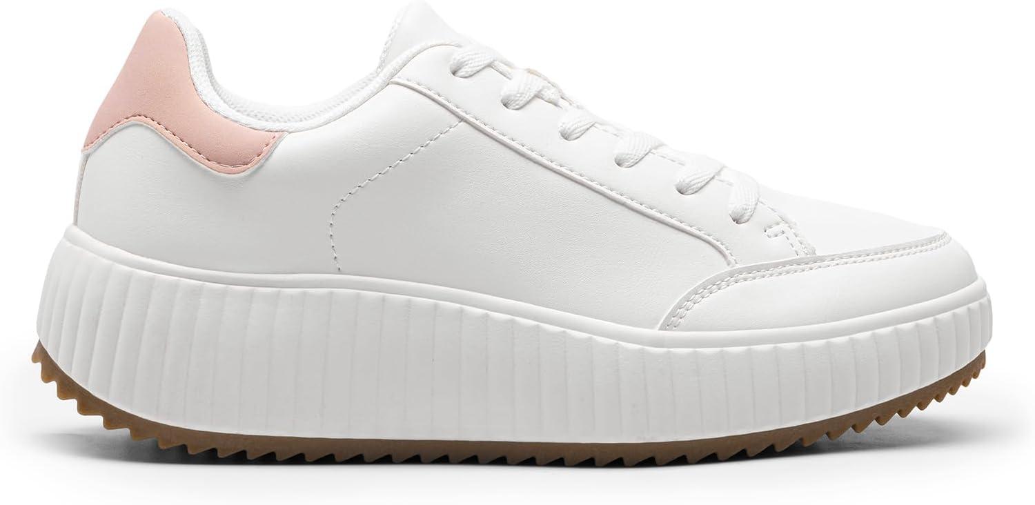 DREAM PAIRS Women Platform Chunky Lightweight Comfortable Casual Faux Leather Lace-Up Dee Walking Fashion Sneakers(White/Hot Pink)