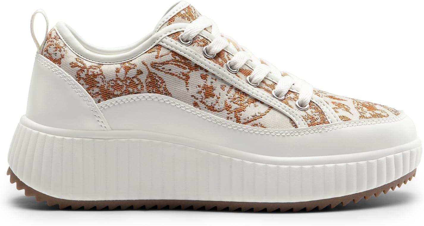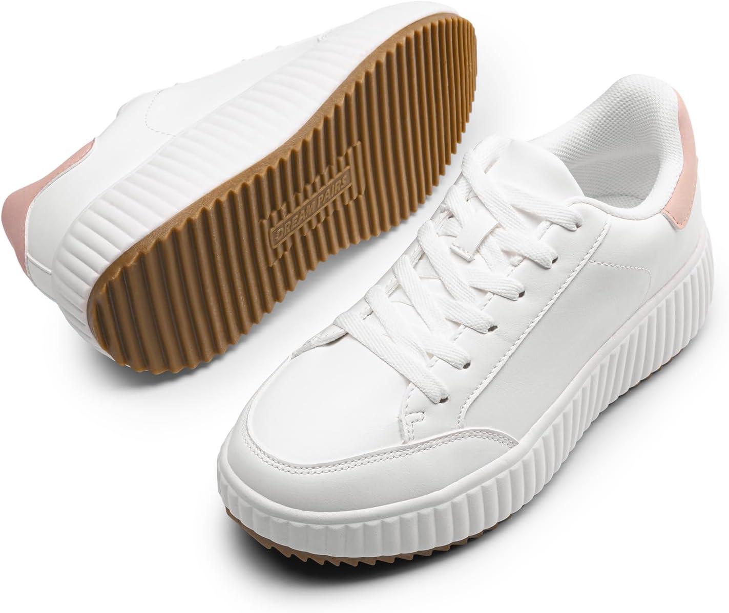 DREAM PAIRS Women Platform Chunky Lightweight Comfortable Casual Faux Leather Lace-Up Dee Walking Fashion Sneakers(White/Apricot)