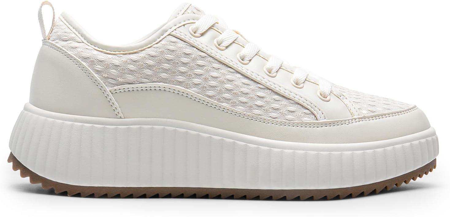 DREAM PAIRS Women Platform Chunky Lightweight Comfortable Casual Lace-Up Sky Walking Fashion Sneakers(Beige)