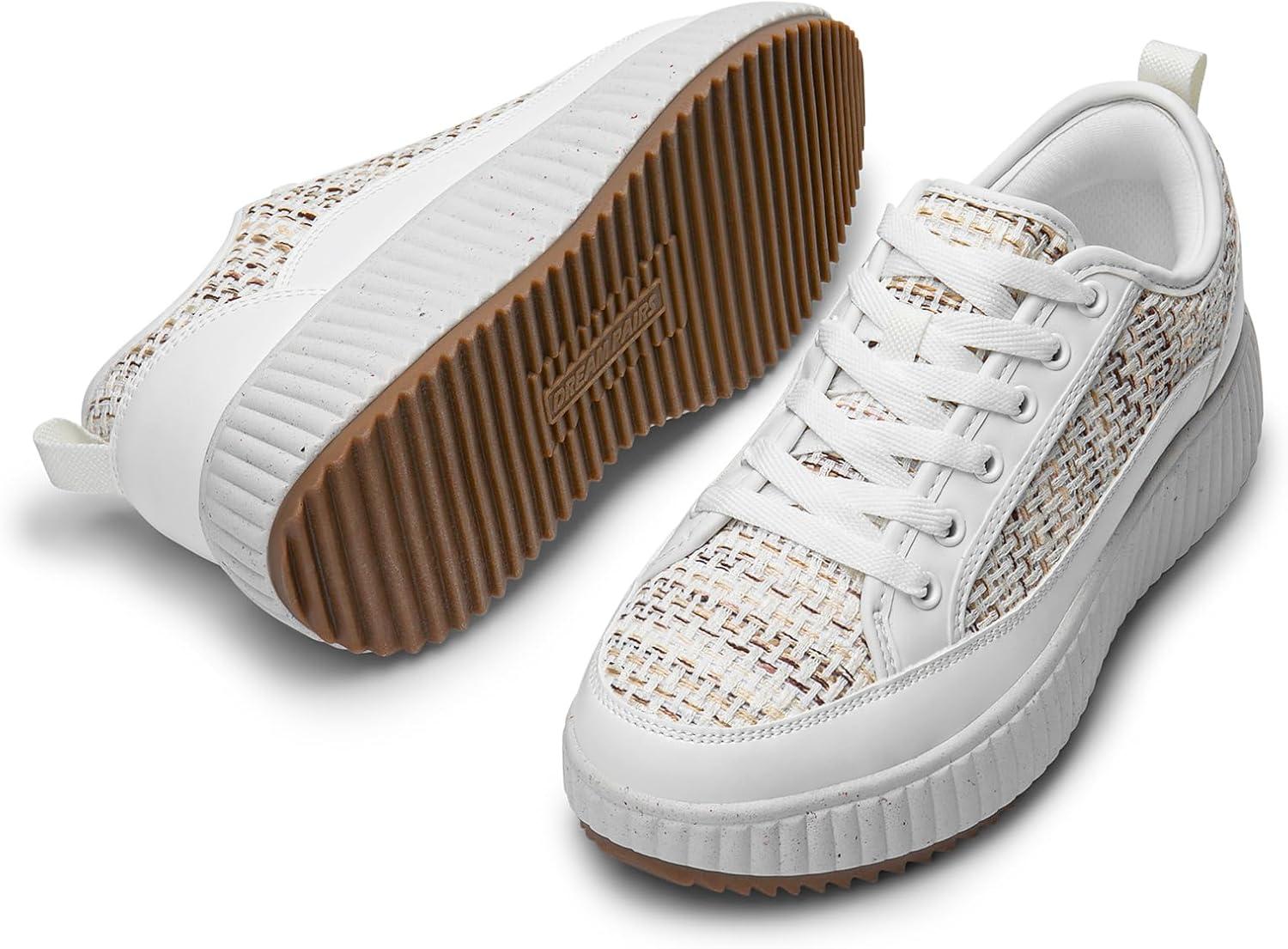 DREAM PAIRS Women Platform Chunky Lightweight Comfortable Casual Lace-Up Sky Walking Fashion Sneakers(Brown/Beige/White)