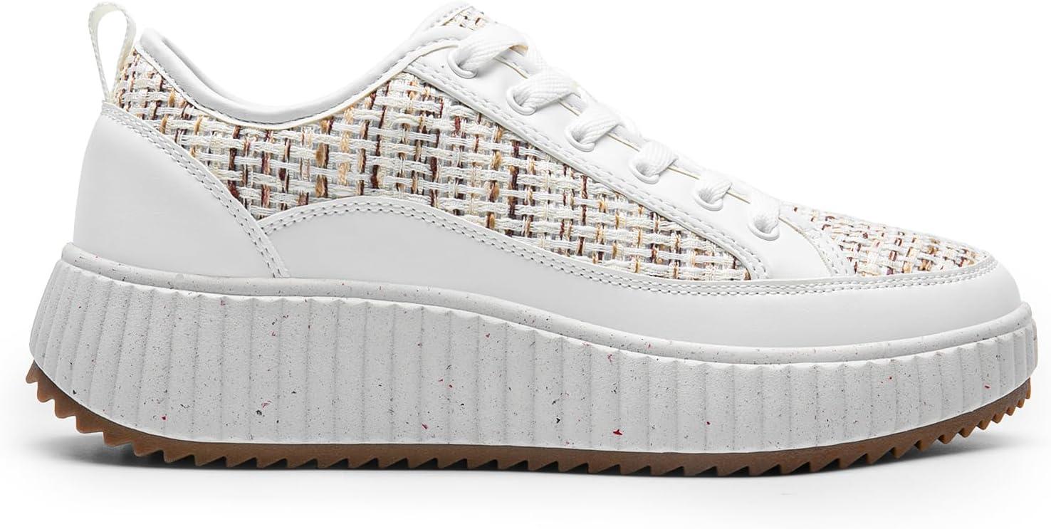 DREAM PAIRS Women Platform Chunky Lightweight Comfortable Casual Lace-Up Sky Walking Fashion Sneakers(Brown/White-pu)