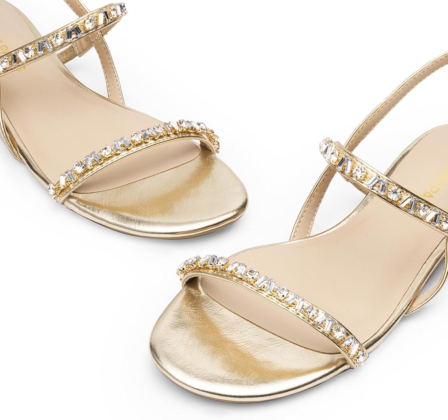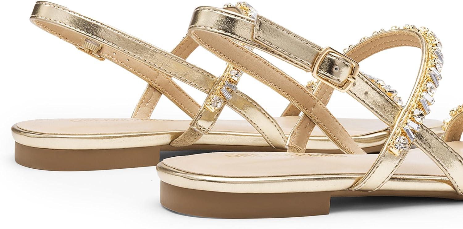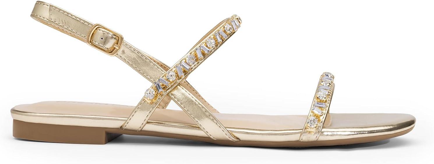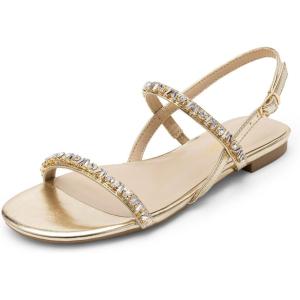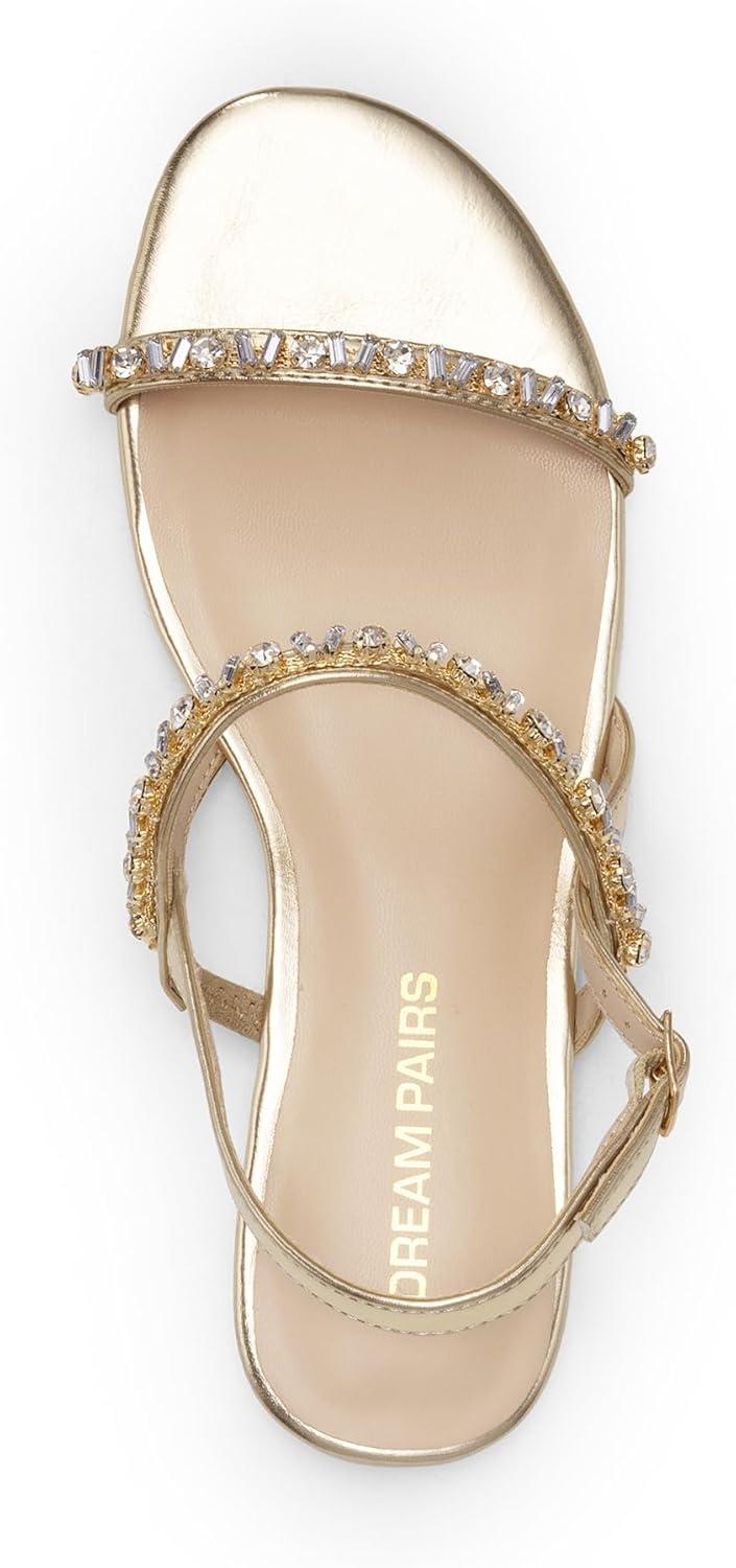 DREAM PAIRS Women’s Rhinestone Sandals Open Toe Casual Dressy Sparkly Comfortable Flat Summer Shoes(Gold)