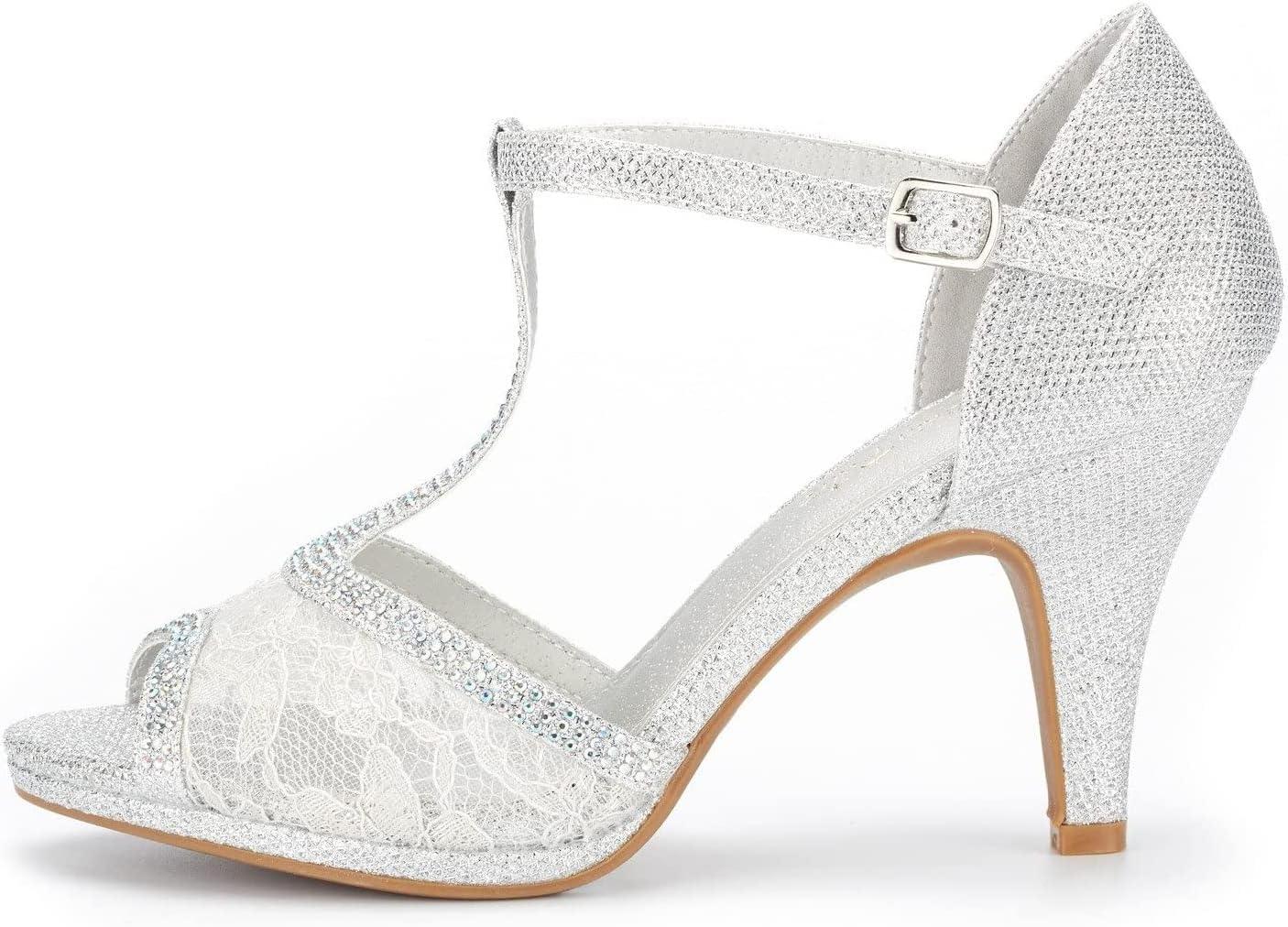 DREAM PAIRS Women’s Stilettos Open Toe Pump Fashion Kitten Heel Sandals(Silver)