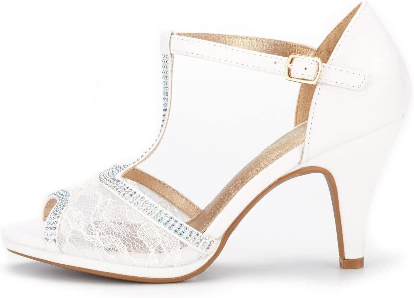 DREAM PAIRS Women’s Stilettos Open Toe Pump Fashion Kitten Heel Sandals(White)