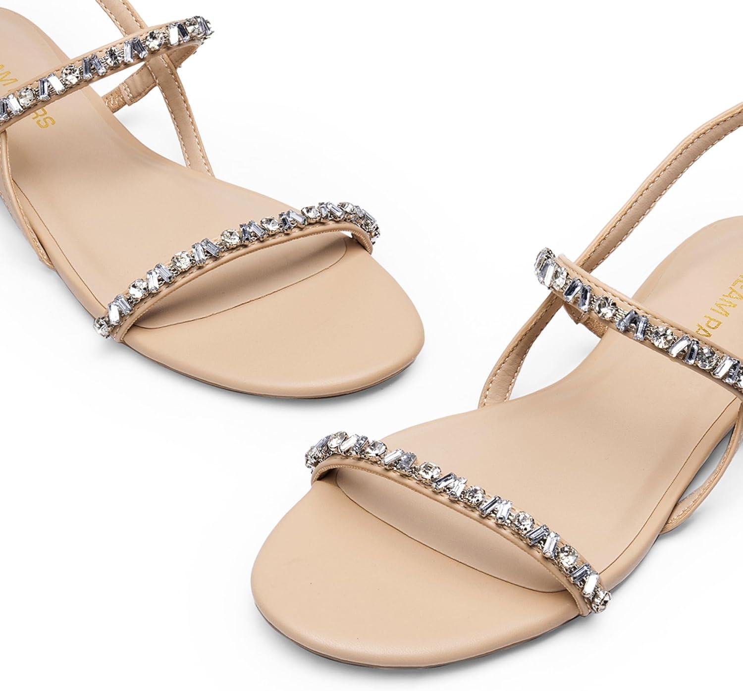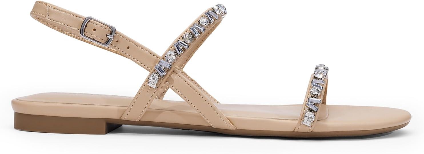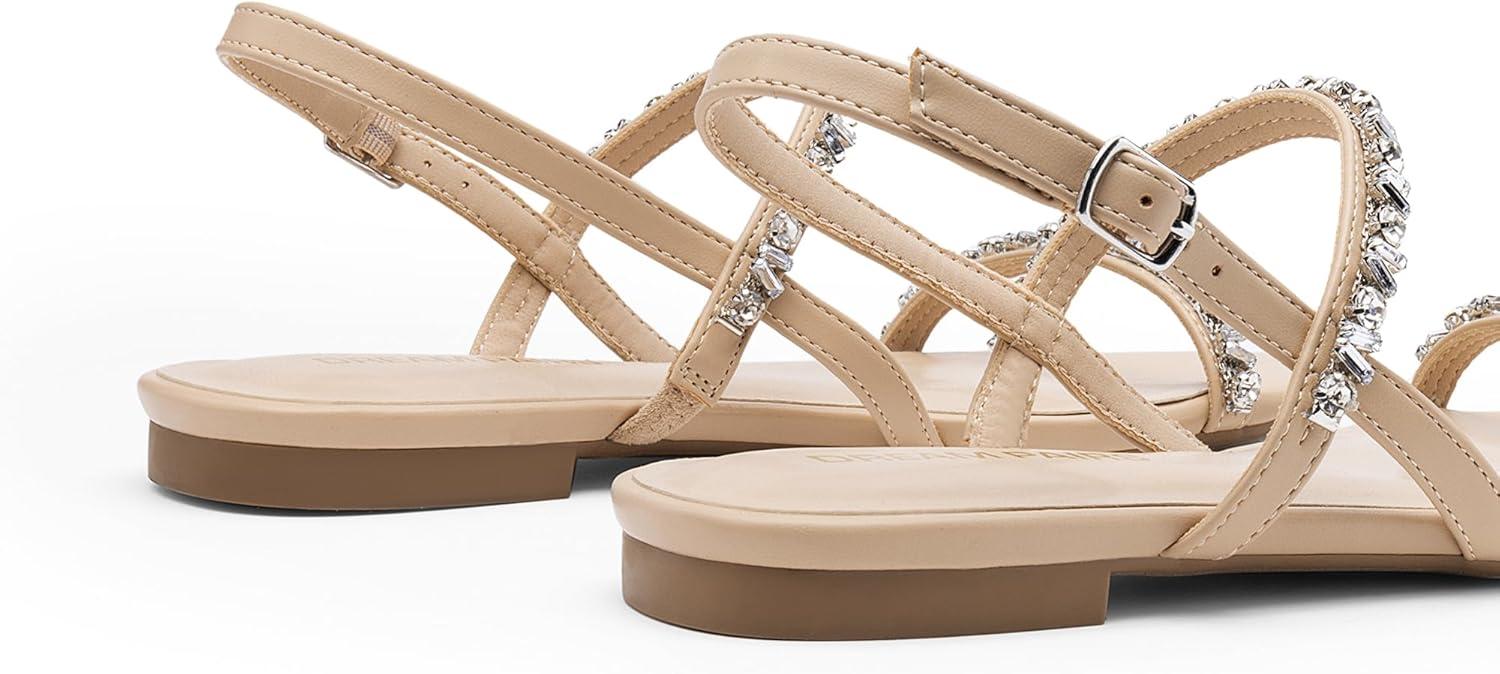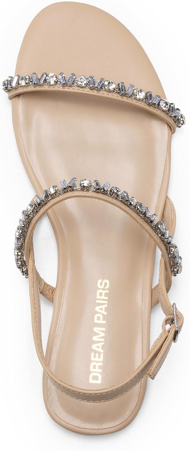 DREAM PAIRS Women’s Rhinestone Sandals Open Toe Casual Dressy Sparkly Comfortable Flat Summer Shoes(Nude)