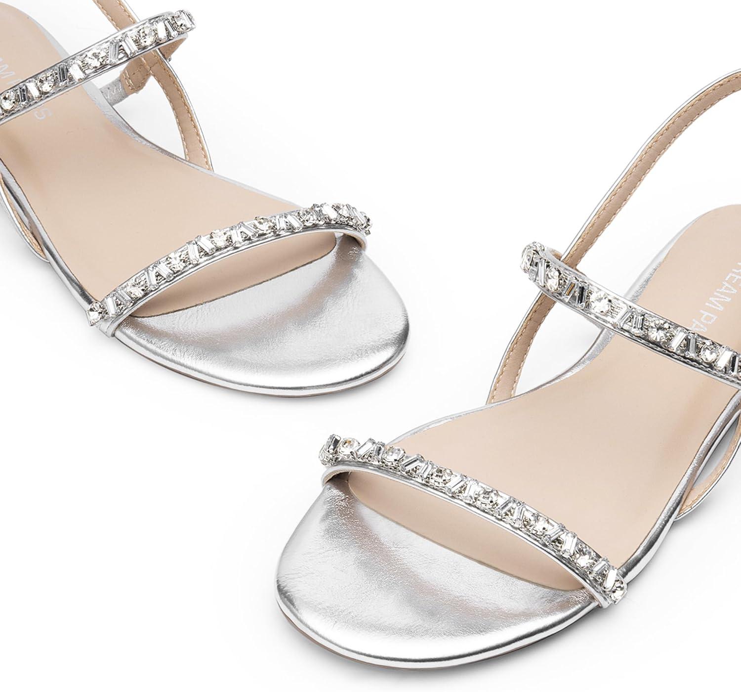 DREAM PAIRS Women’s Rhinestone Sandals Open Toe Casual Dressy Sparkly Comfortable Flat Summer Shoes(Silver)