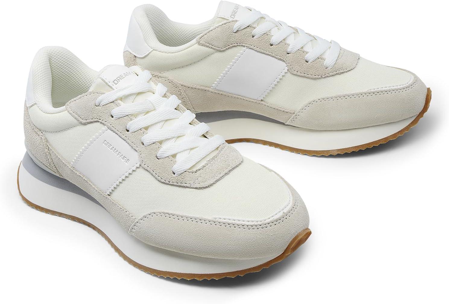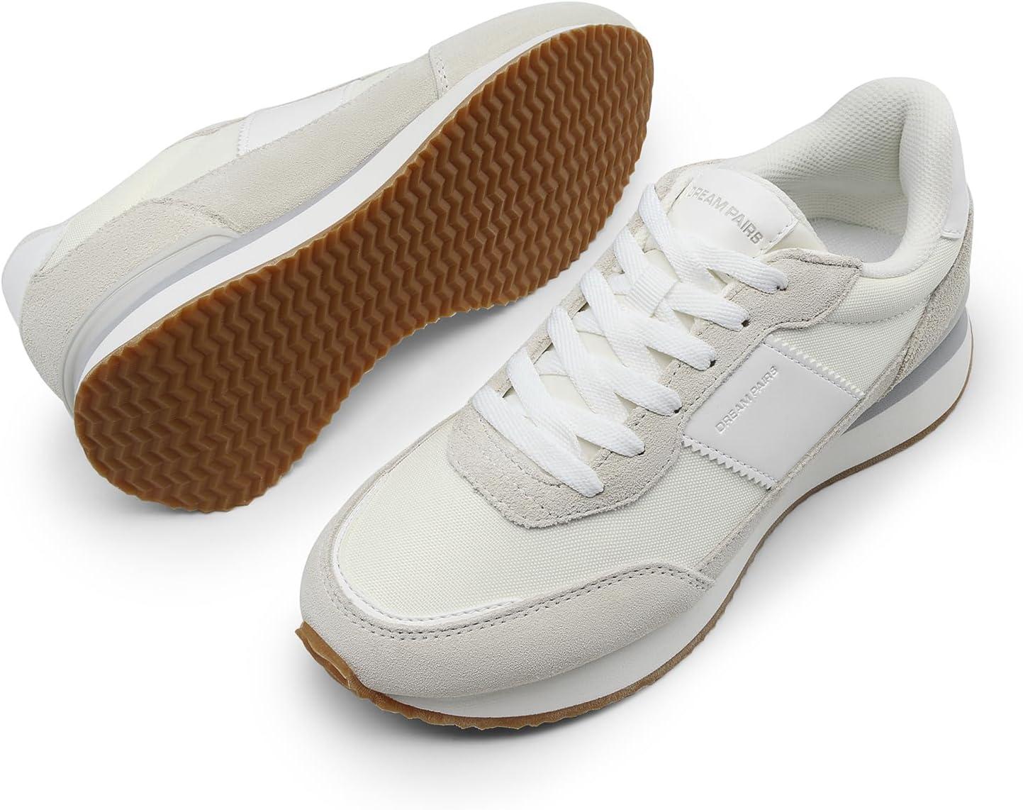 DREAM PAIRS Women Fashion Sneakers Walking Tennis Sports Athletic Comfortable Lightweight Running Lace Up Retro Classic Casual Sneaker(White/Beige)