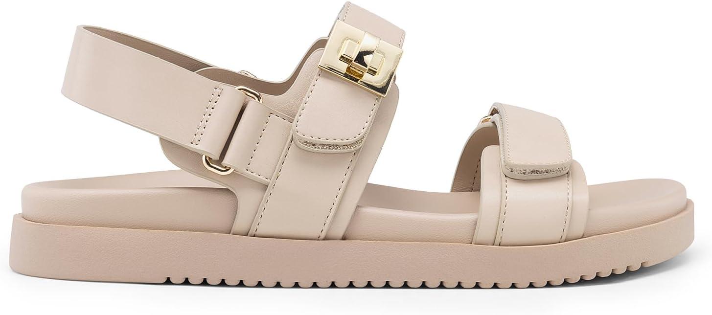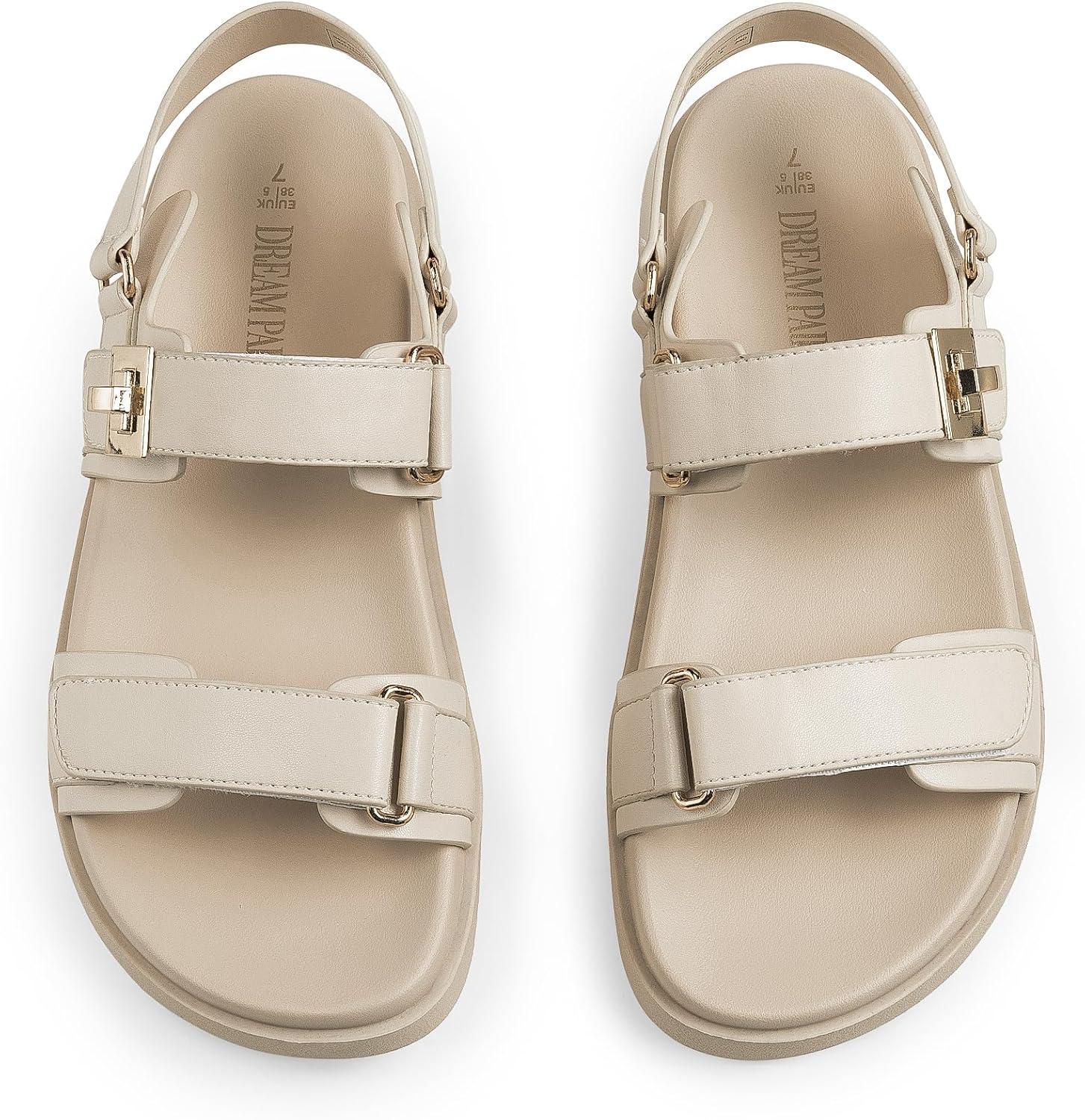 DREAM PAIRS Women’s Comfortable Open Toe Flat Sandals Fashion One Band Summer Dessy Sandals(Beige-pu)