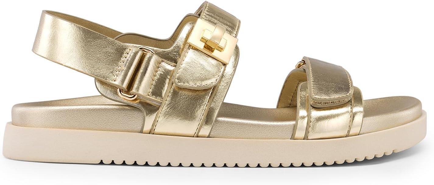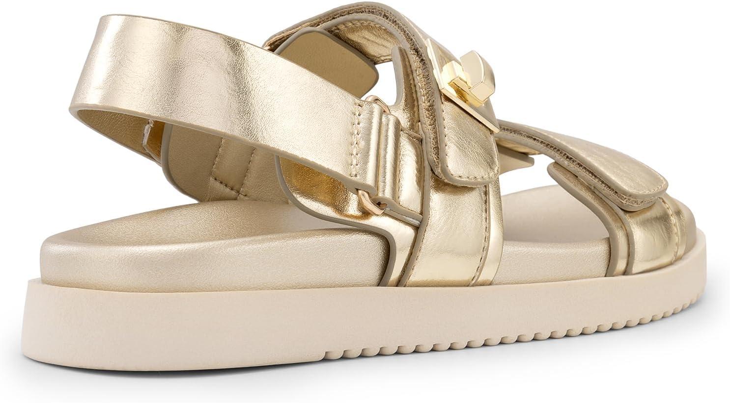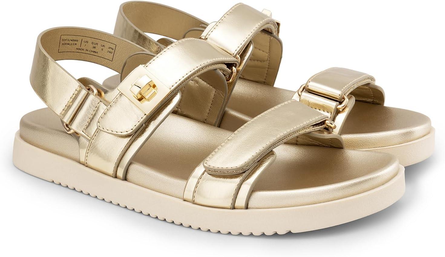 DREAM PAIRS Women’s Comfortable Open Toe Flat Sandals Fashion One Band Summer Dessy Sandals(Gold-metallic)