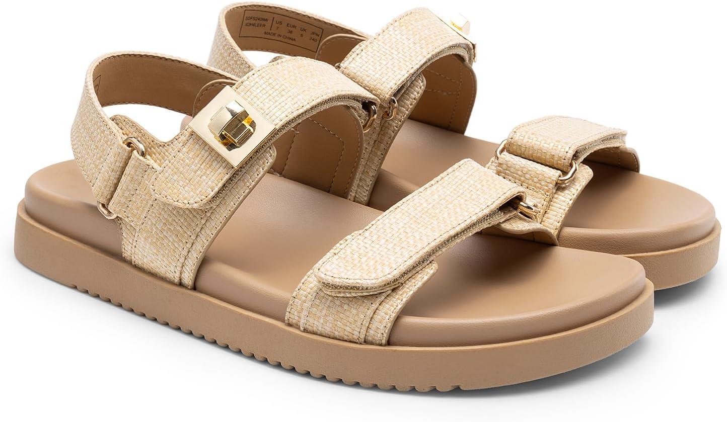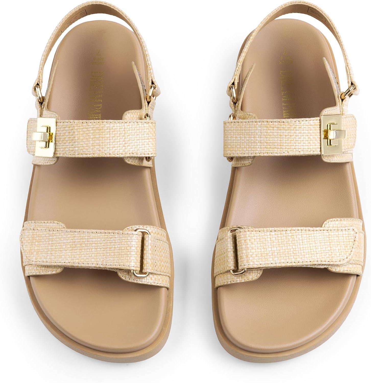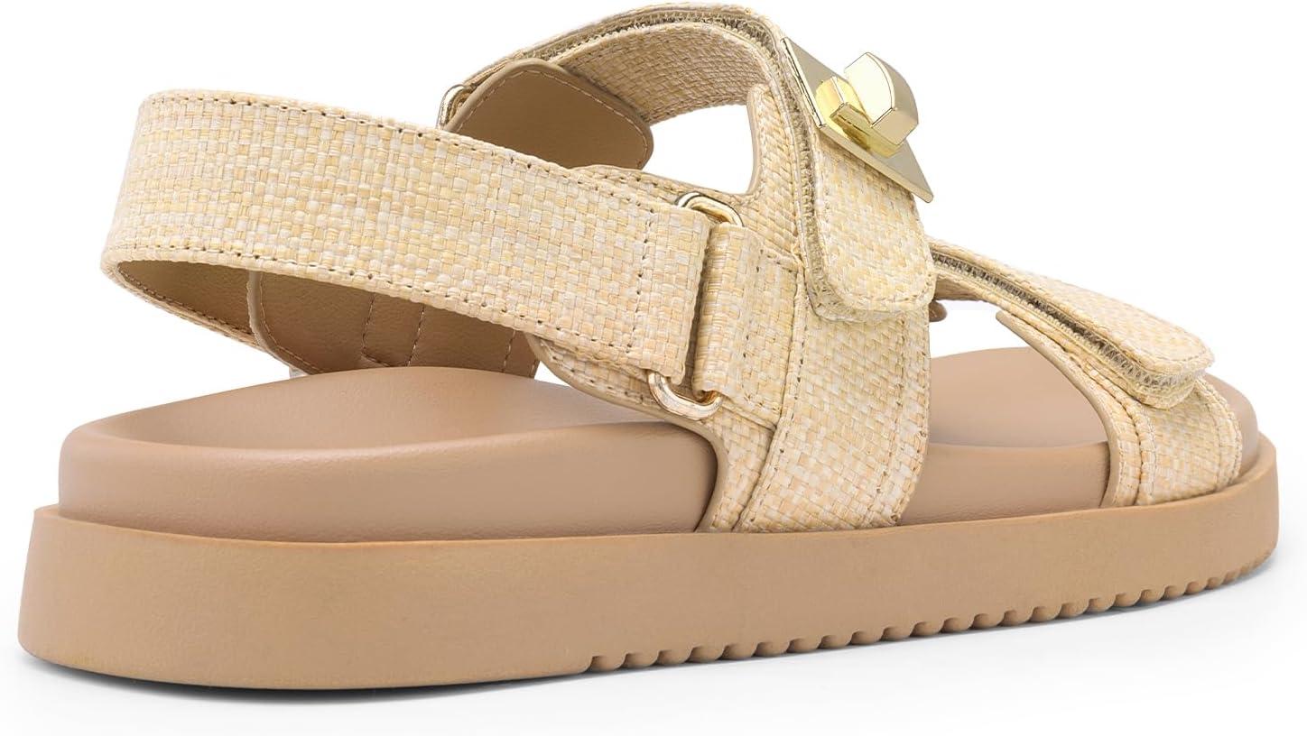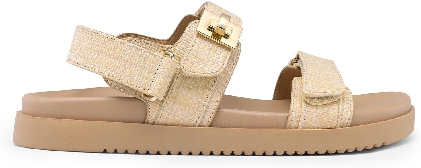 DREAM PAIRS Women’s Comfortable Open Toe Flat Sandals Fashion One Band Summer Dessy Sandals(Natural-raffia)