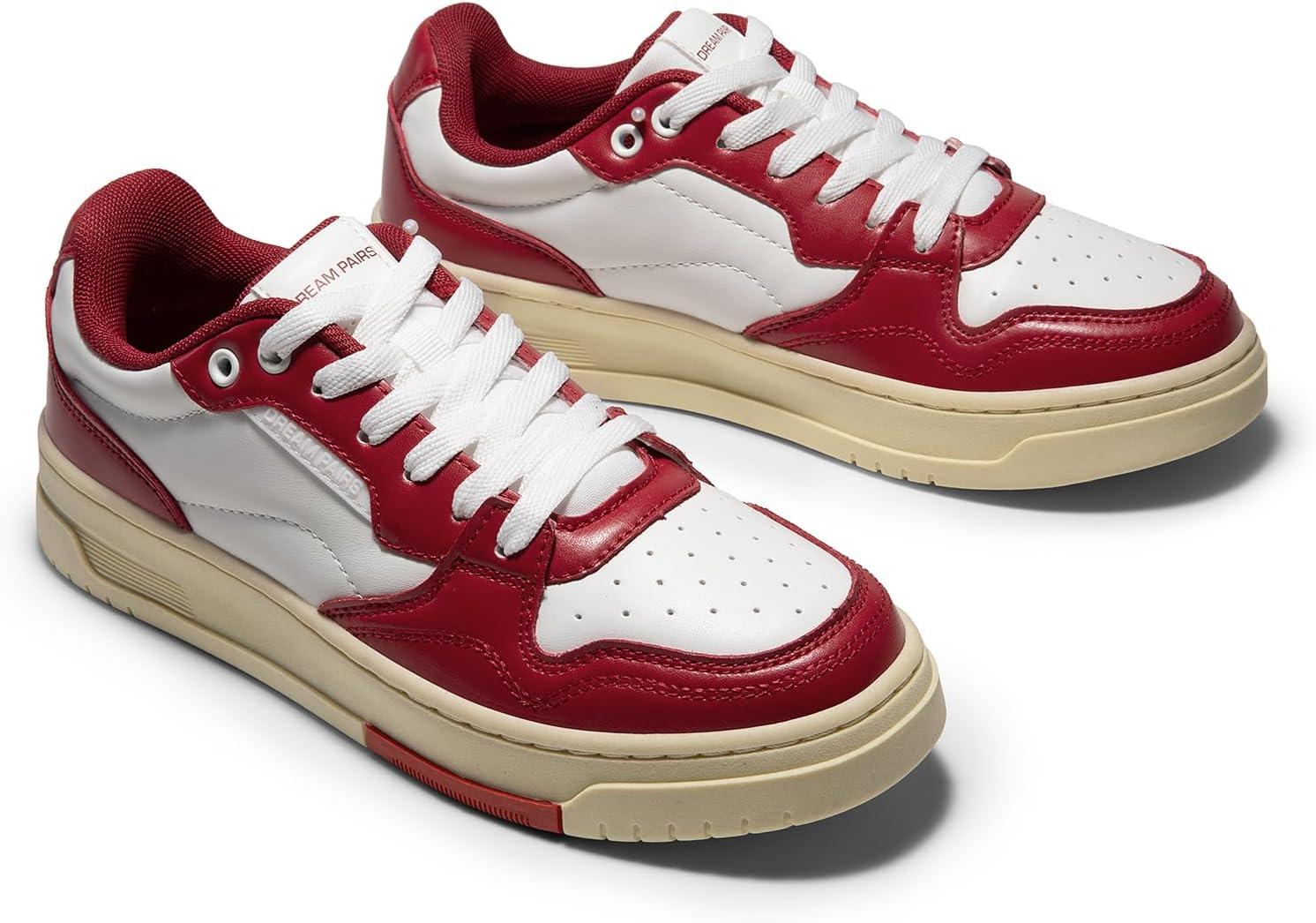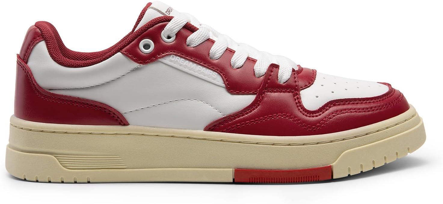 DREAM PAIRS Women’s Fashion Walking Skateboard Court Sneakers Comfortable Low-Top Lace-Up Non-Slip Retro Vintage Casual Classic Athletic Shoes(White/Red)