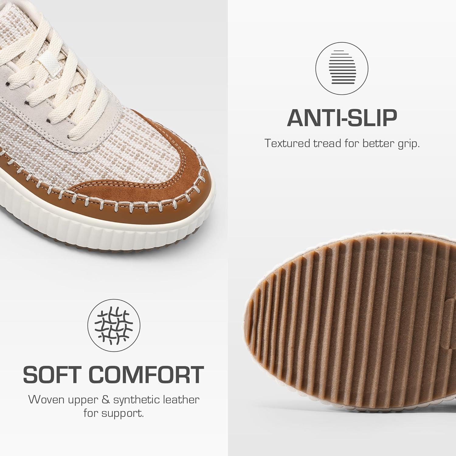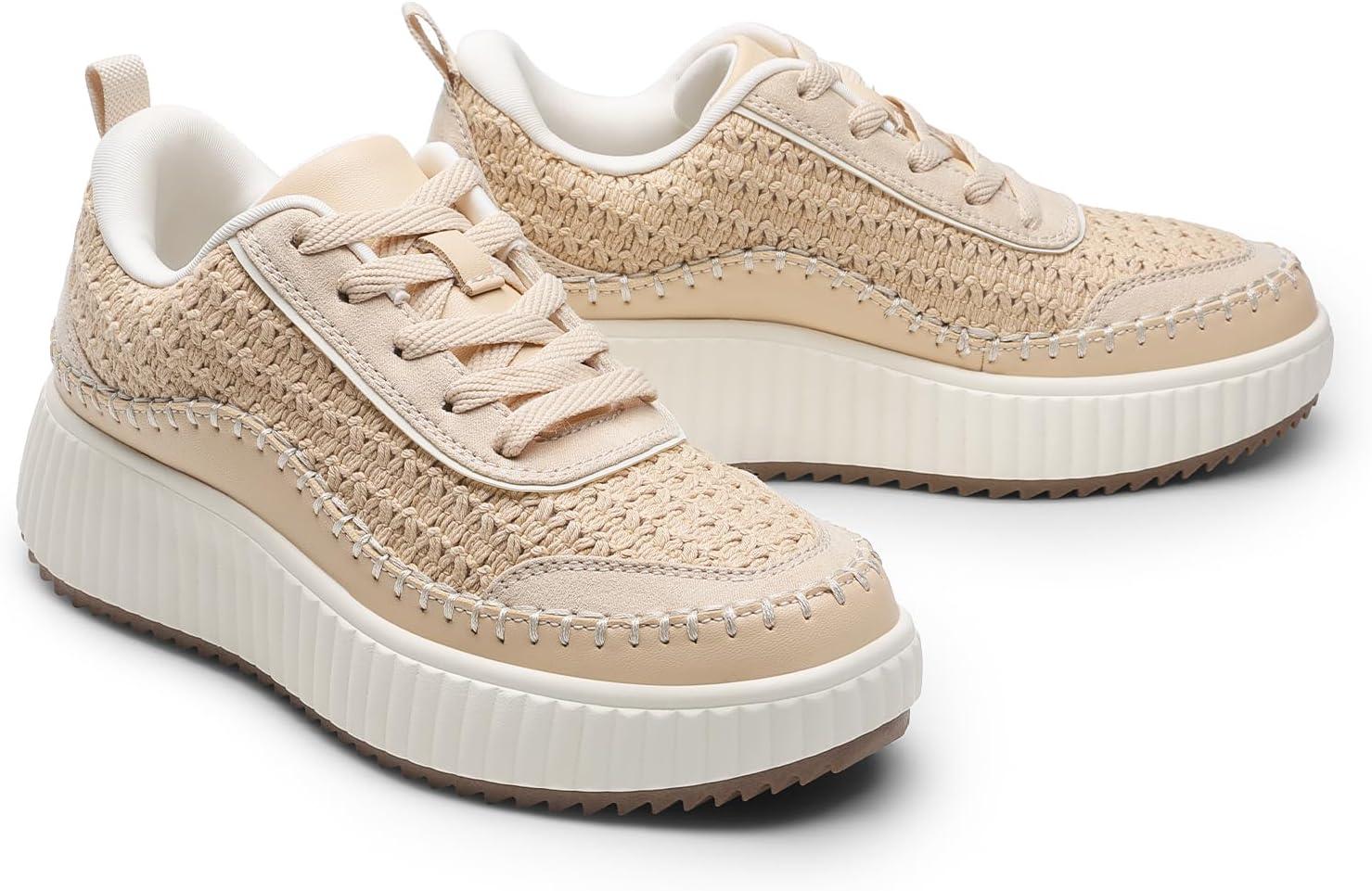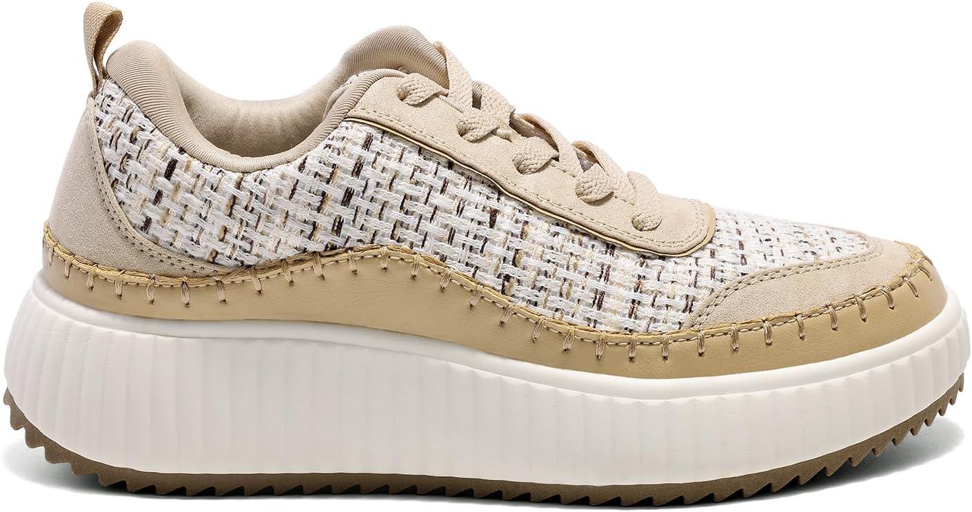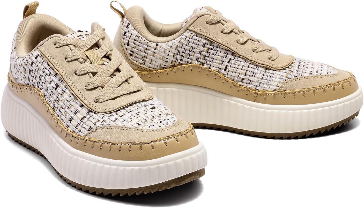 DREAM PAIRS Women Chunky City Tweed Comfortable Casual Platform Fashion Sneaker(Beige)
