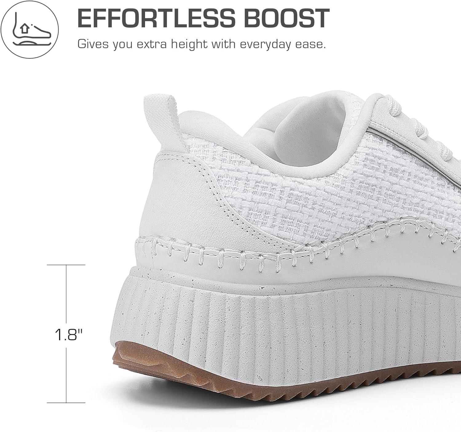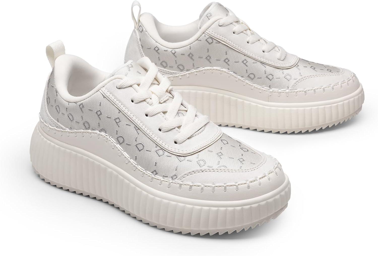 DREAM PAIRS Women Platform Chunky Lightweight Comfortable Casual Lace-Up Sky Walking Fashion Sneakers(White/Pu)