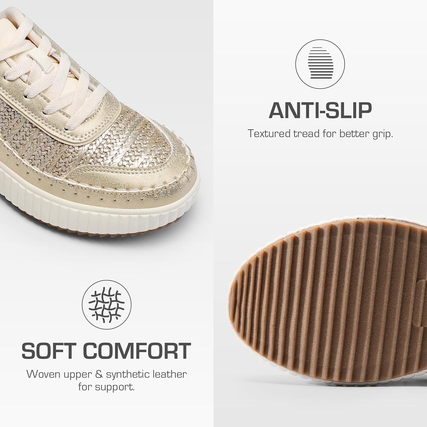 DREAM PAIRS Women Chunky City Tweed Comfortable Casual Platform Fashion Sneaker(Gold)