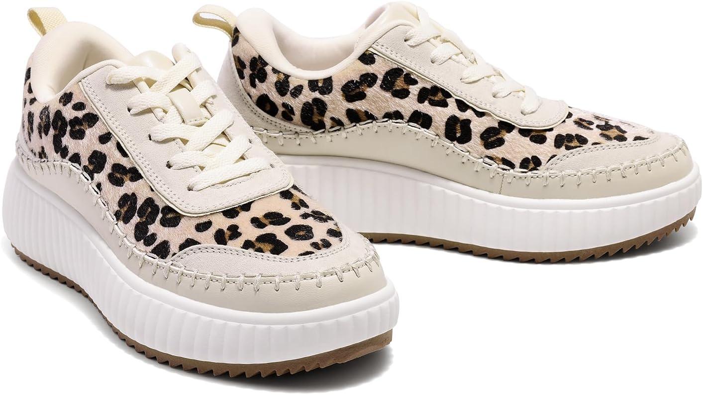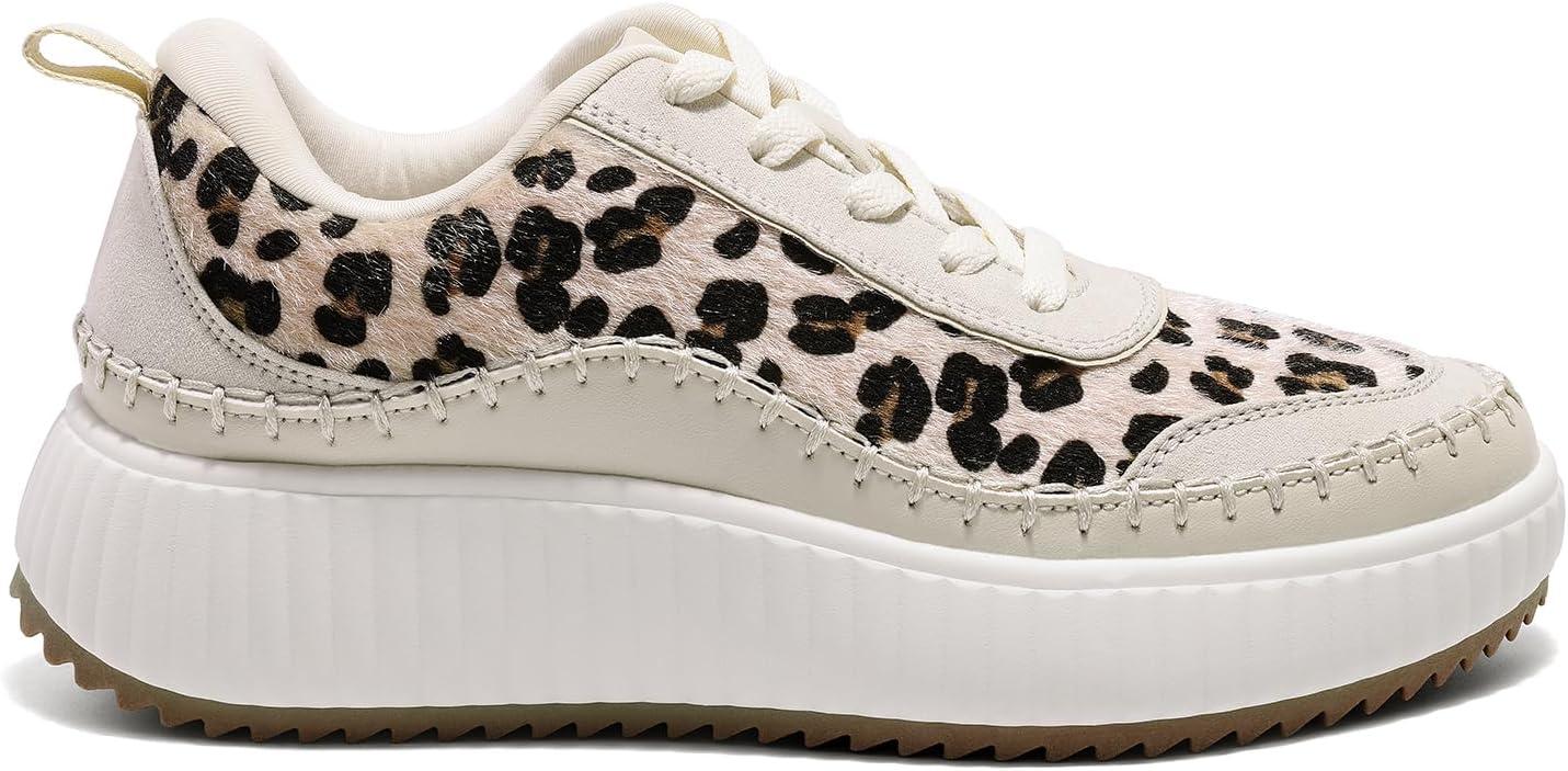 DREAM PAIRS Women Chunky City Tweed Comfortable Casual Platform Fashion Sneaker(Leopard)