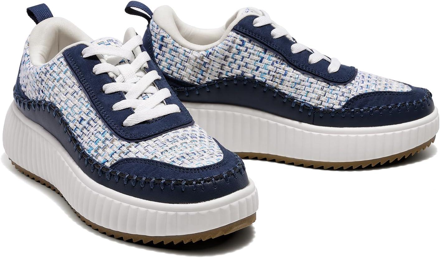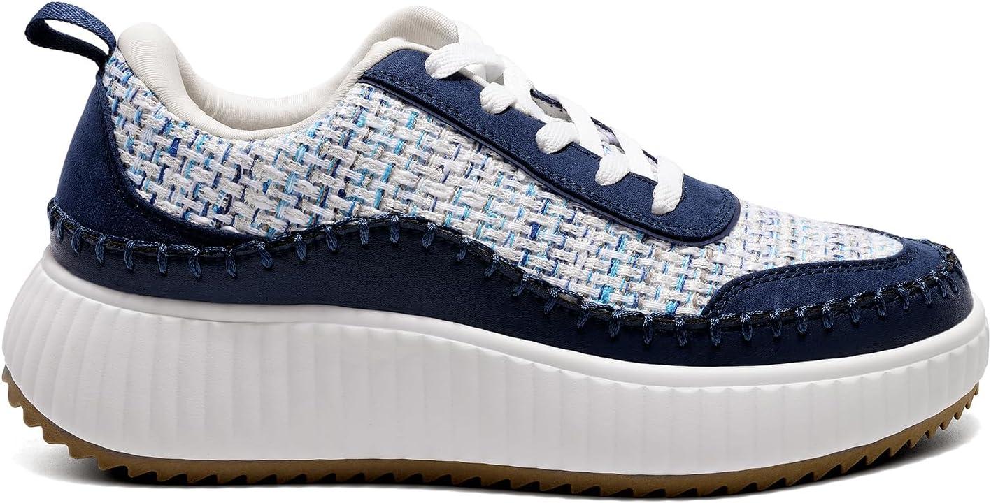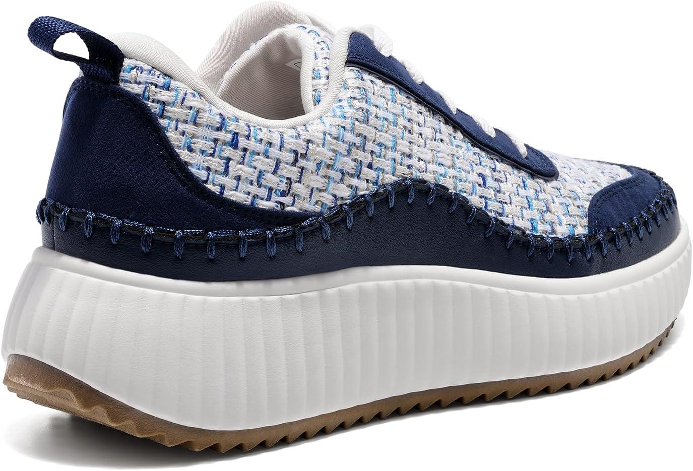 DREAM PAIRS Women Chunky City Tweed Comfortable Casual Platform Fashion Sneaker(Navy)