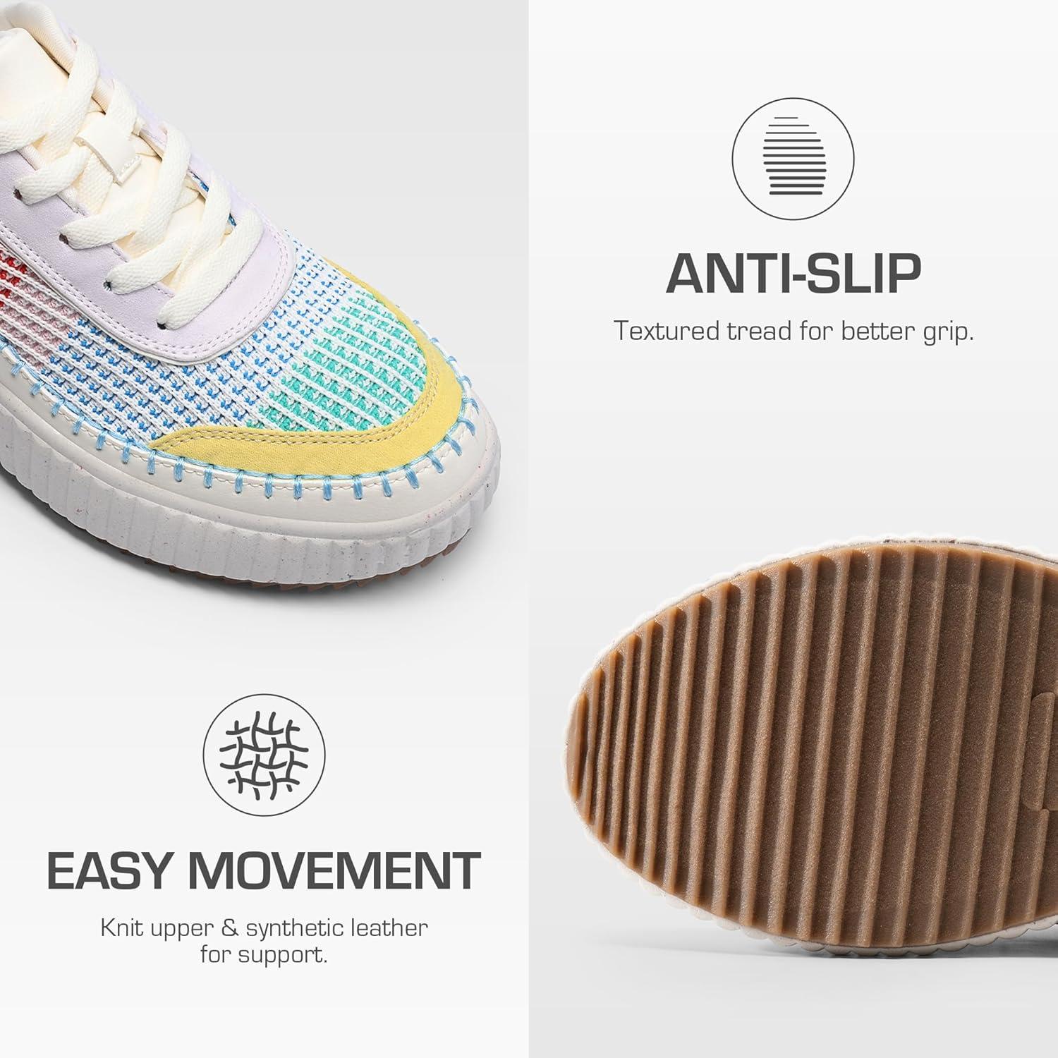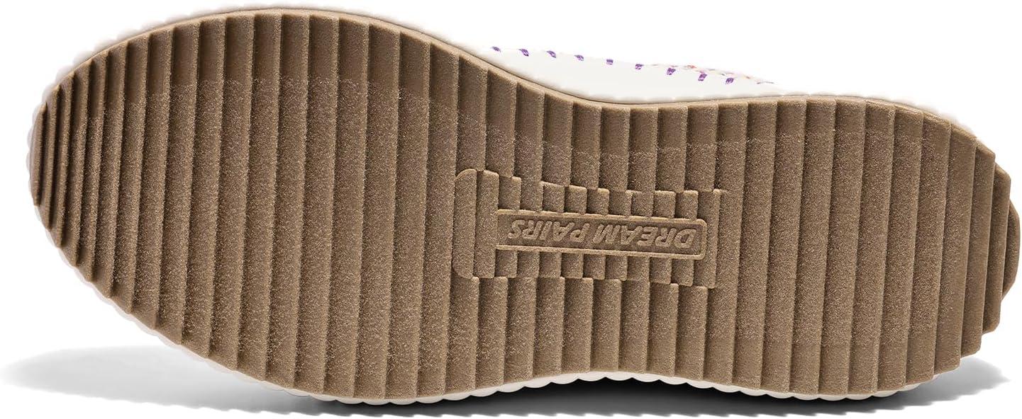 DREAM PAIRS Women Chunky City Tweed Comfortable Casual Platform Fashion Sneaker(White/Rainbow)