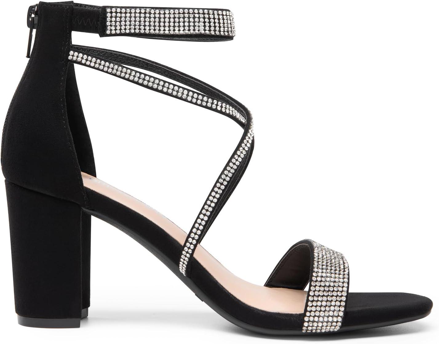 DREAM PAIRS Womens Chunkle(Black/Rhinestone)